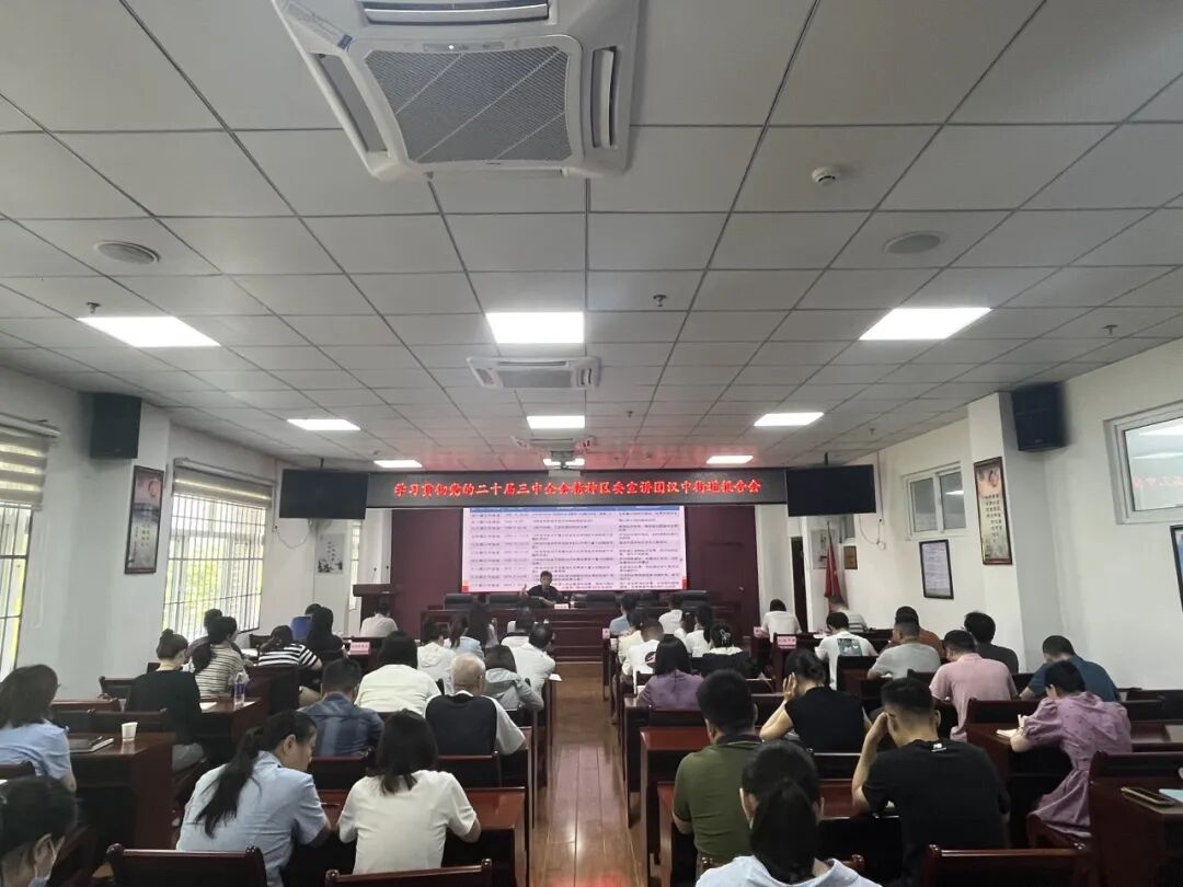 8月20日,汉中街道举办学习贯彻党的二十届三中全会精神宣讲报告会,邀请区委宣讲团成员、武汉纺织大学教授喻学林授课。会上,喻学林以“深入学习二十届三中全会精神 奋力推进中国式现代化伟业”为题,从历届三中全会重要变革、二十届三中全会召开的时代背景切入,全面阐释了全会的重大意义及精神实质、《中共中央关于进一步全面深化改革、推进中国式现代化的决定》的基本内容、重点及亮点,帮助大家加深了对全会精神的理解和把握,是对学习贯彻全会精神的一次深入辅导和有力指导。与会同志表示,要以此次宣讲活动为契机,学深悟透习近平总书记关于全面深化改革的一系列新思想、新观点、新论断,把学习贯彻全会精神与当前经济发展、基层治理、安全稳定、民生保障等各项重点工作结合起来,以切实有力的举措抓好全会精神的学习宣传和贯彻落实。