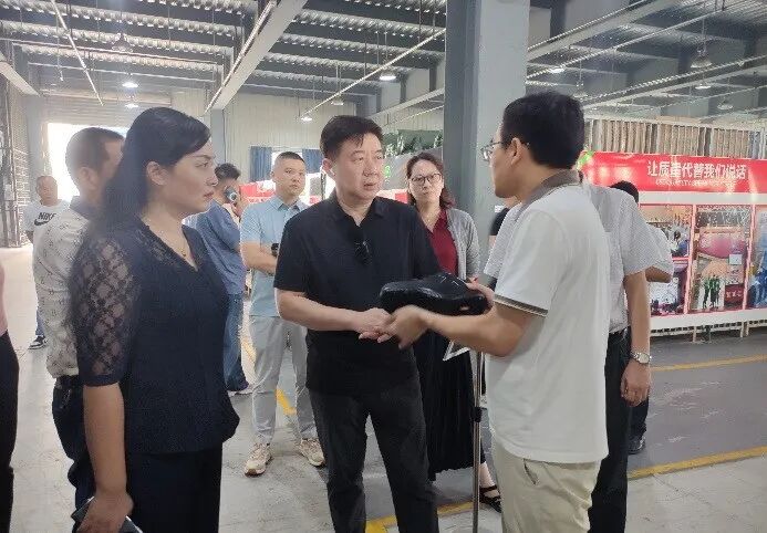 活动期间,阳新县工商联负责人陪同考察了湖北可兴鞋业有限公司,该公司是阳新县800余家制鞋产业中的龙头企业,公司负责人带大家参观了生产线、研发测试实验室,介绍了公司的经营规模、运营情况,详细讲解了产品定位、生产销售、研发特色等。武汉鞋业商会的负责人就鞋服产业链的合作建设与企业负责人进行了深入交流。