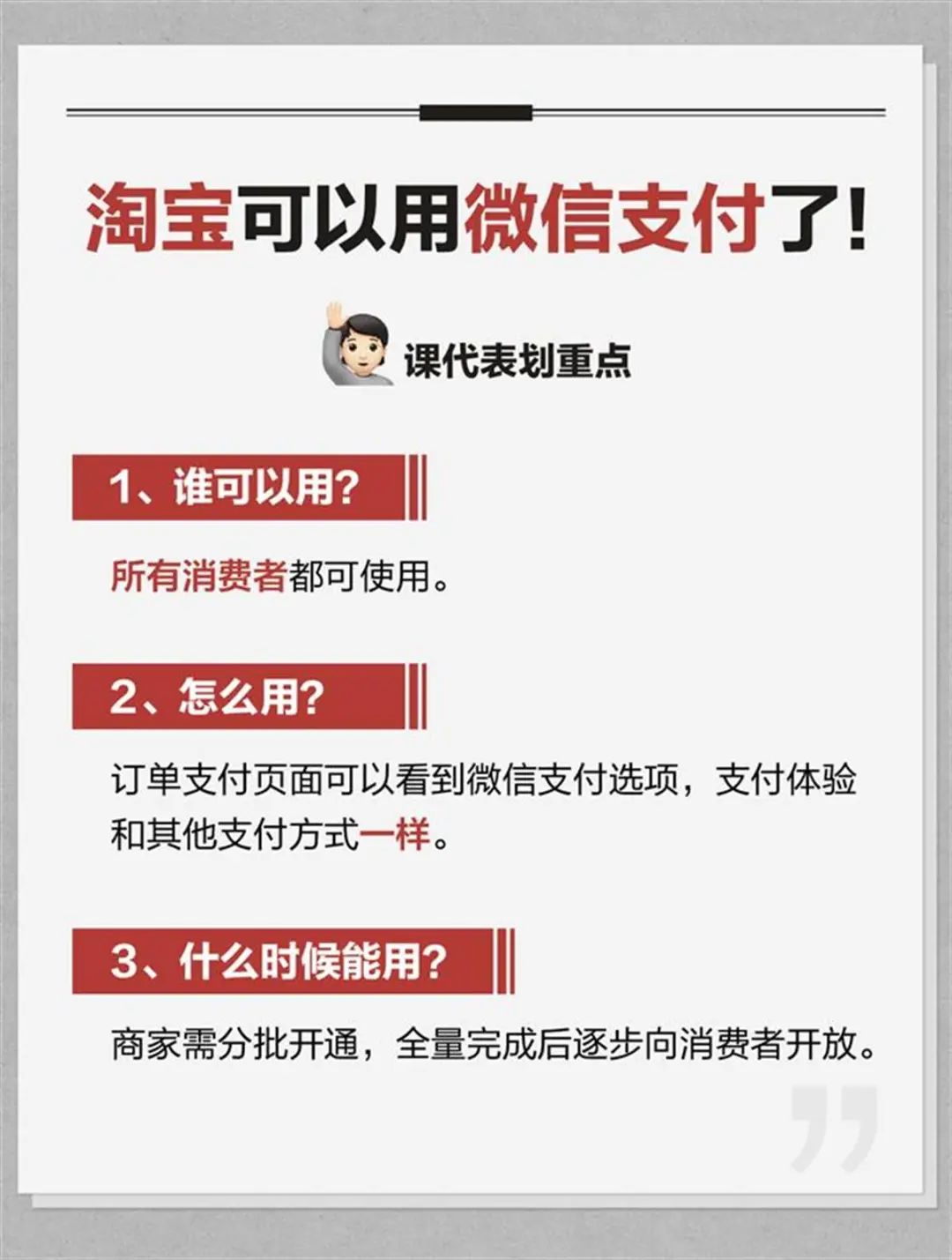 2024年年初,有多名网友发现部分淘宝订单可以直接跳转至微信支付进行付款。
