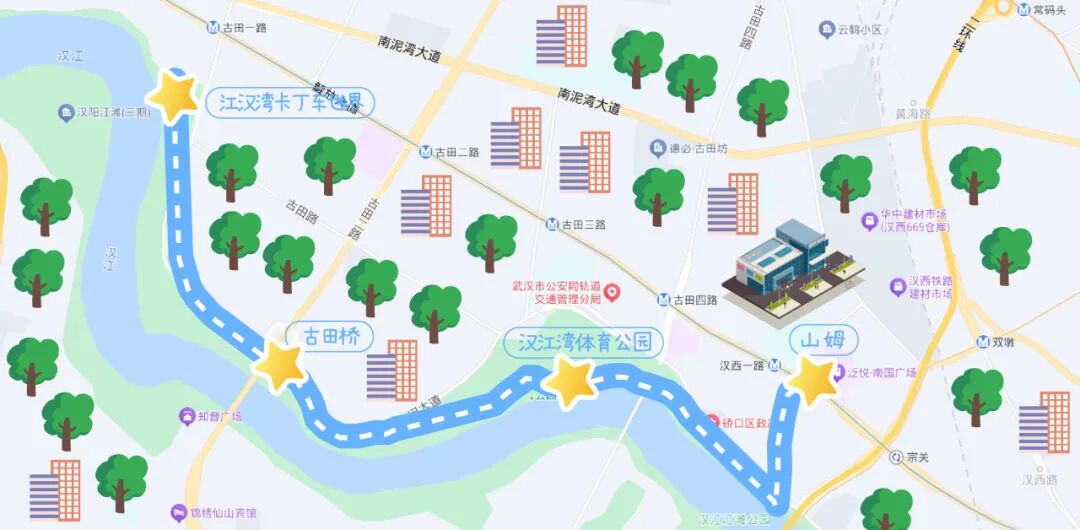 汉江湾卡丁车世界—古田桥—汉江湾体育公园—山姆