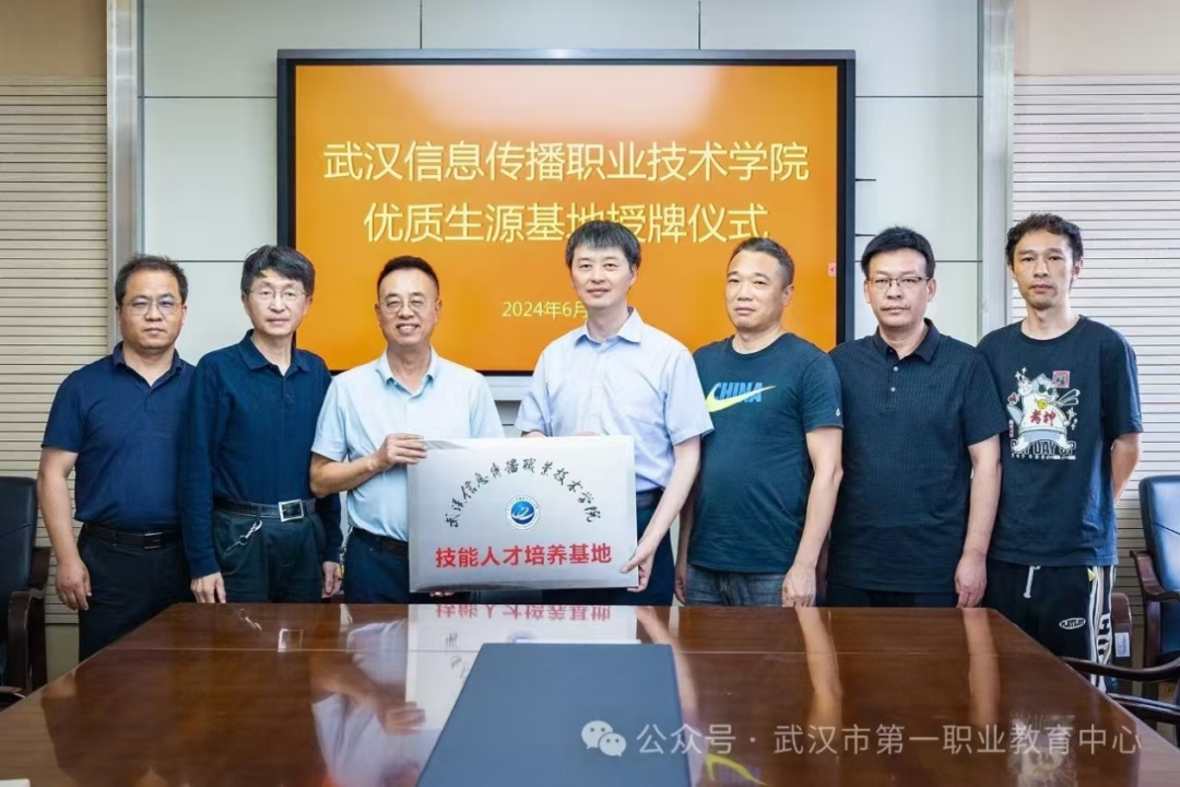 ▲ 武汉信息传播职业技术学院授予一职教中心“技能人才培养基地”牌匾