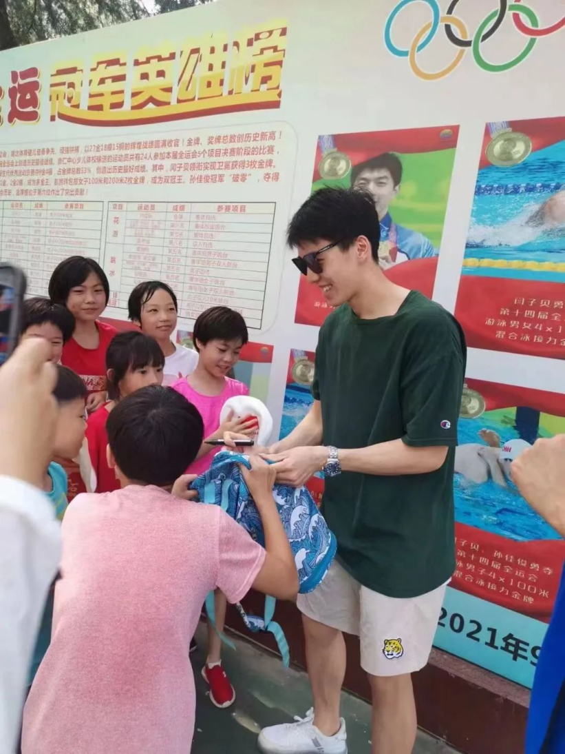 ▲孙佳俊回泳队看望小队员们