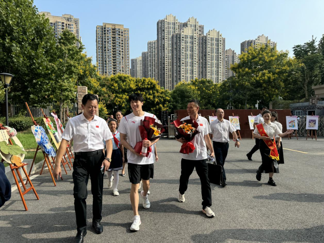 活动上,孙佳俊与昔日教练刘华斌和班主任张兆君一起回顾了在母校度过的宝贵时光并深情拥抱。从得知孙佳俊要出征巴黎奥运会,张兆君老师就密切关注着这位昔日学生的每一场比赛。“这么多年的坚持和艰辛着实不易,最后能够顶住压力、问鼎巅峰,那份荣耀你当之无愧。”张老师拉着孙佳俊的手说道。