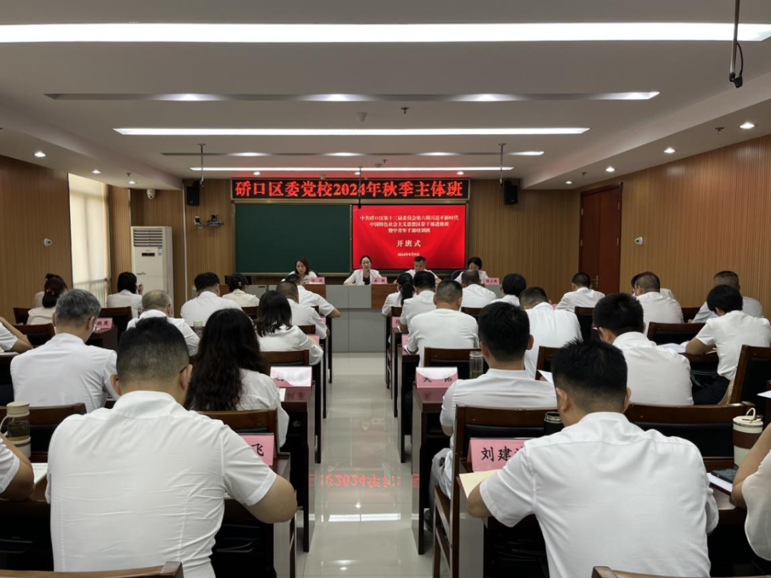 2024年9月9日上午,中共硚口区第十三届委员会第六期习近平新时代中国特色社会主义思想区管干部进修班暨中青年干部培训班在区委党校开班。区委常委、组织部部长、党校校长赫敏出席开班仪式并作动员讲话。区委党校领导班子成员、培训班48名学员参加开班式。