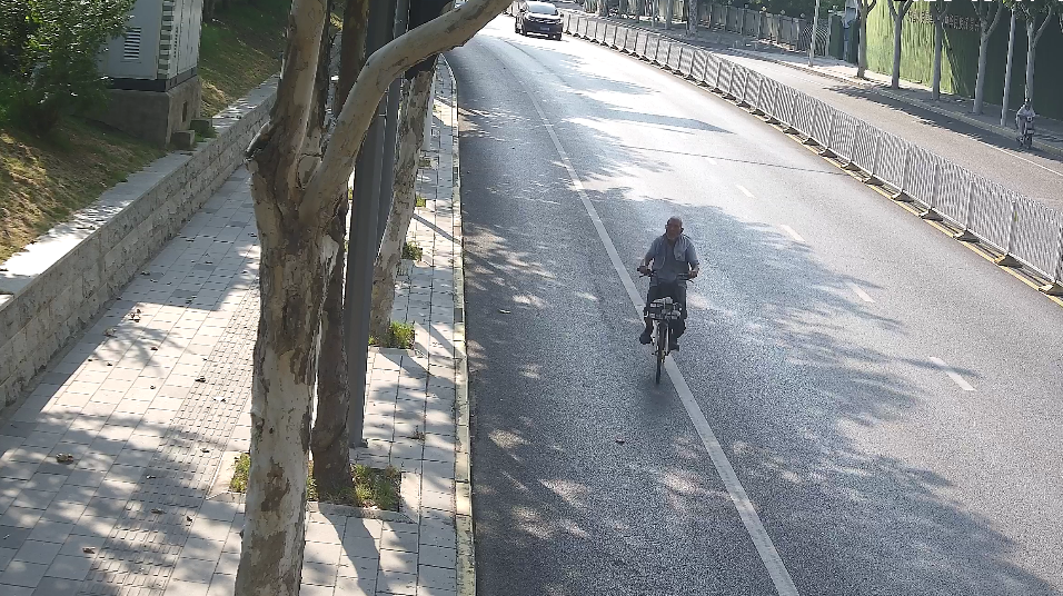 9月7日,陈有银骑车在武汉看长江大桥。(硚口警方提供视频监控截图)