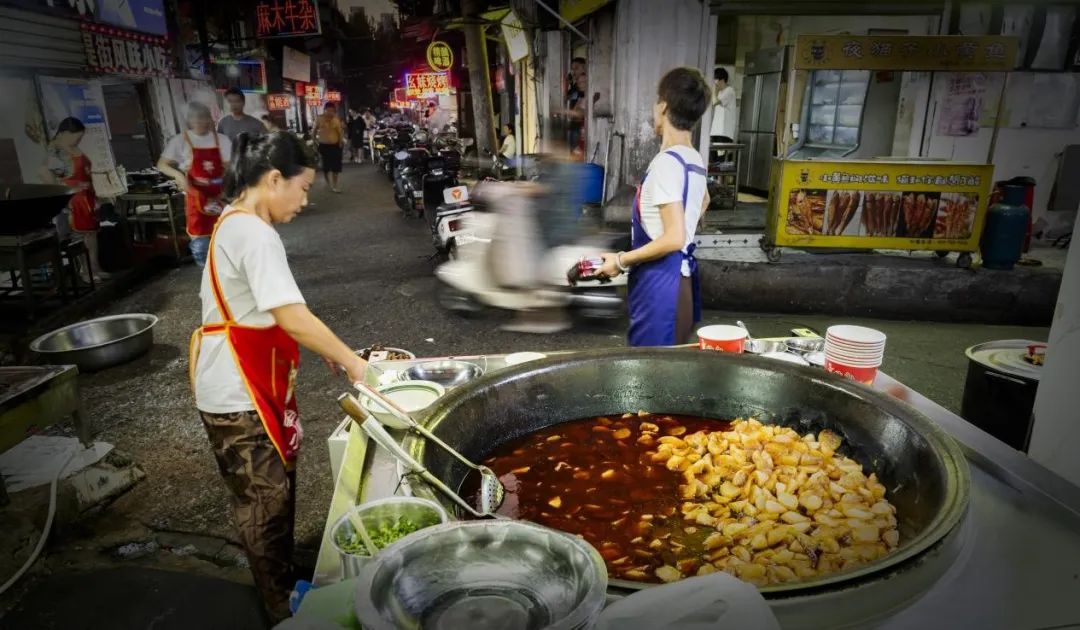 当夜幕降临时,这里冉冉升起的烟火气、锅灶气,将弥漫到次日的晨曦。翻台子的忙碌,让店家舒心,让食客放开肚皮。