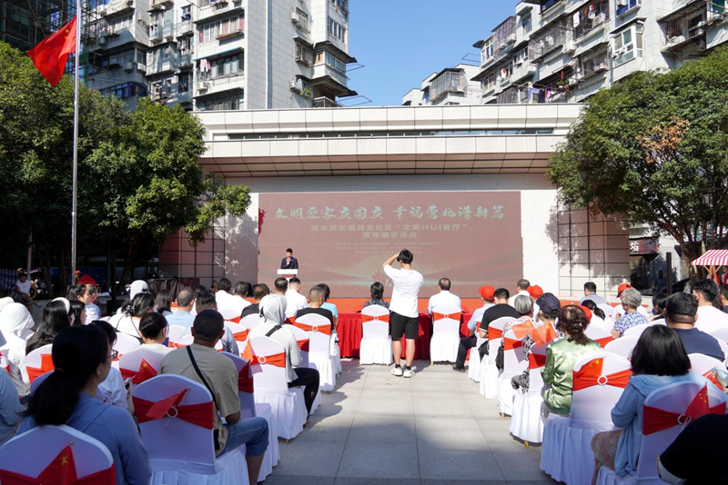 9月29日,由中共硚口区委宣传部、硚口区新时代文明实践中心主办的“文明迎客庆国庆 幸福营北谱新篇”汉水桥街道营北社区“文明HUI客厅”宣传展示活动举行。