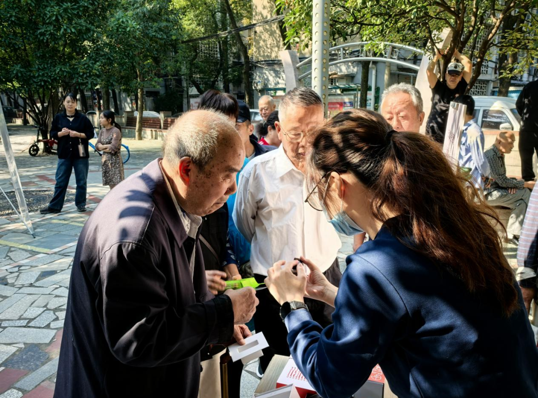 在“友好市集区”,企业志愿者提供的摊位展示了各种适合老年人的生活用品、保健品、手工艺品等,在此展示手工作品正在进行义卖,居民们积极参与,所筹款项将捐赠给老年友好社区计划项目,用于支持社区为老服务工作开展;在“非遗文化体验区”,非遗传承人在活动现场展示并教授剪纸等传统手工艺,居民们积极参与,在剪纸体验中感受传统文化的魅力;在“红歌坊”,居民们热火朝天的进行着红歌演唱比赛;在“适老化体验区”,模拟了适老化的居家环境,提供了拐杖、助行器等体验设备和工具,学生志愿者与老年人们一起参与了互动,共同探讨老年人在日常生活中的困难与需求。