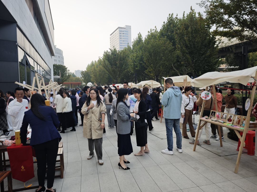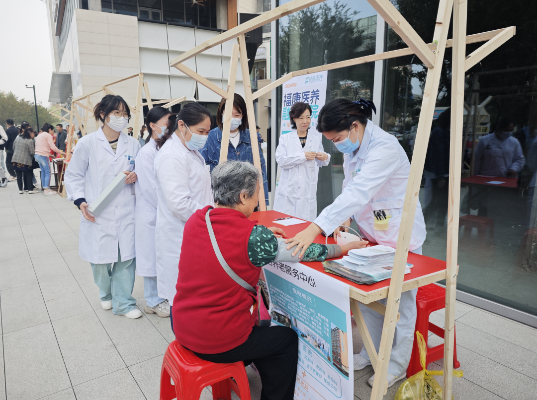 韩家墩街综合养老服务中心为居民们进行现场义诊,韩家墩街道阳光家园的学员们则把自己制作的干花相框、福包、串珠作品等手工制品搬到了现场。