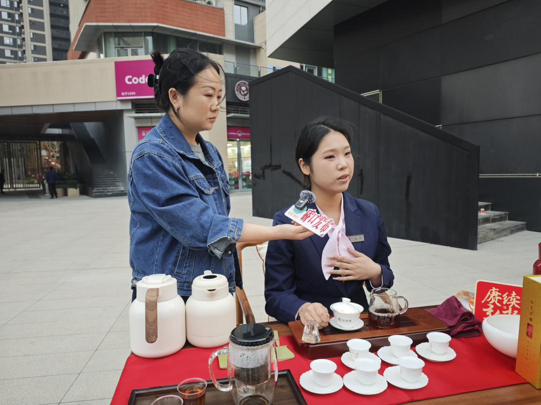 一旁的公益集市也是人气爆棚,非遗魔术快闪秀、阳光家园义卖、现场泡茶、鱼圆蛋糕披萨等美食试吃服务展位依次排开,不少展位前排起了长队。