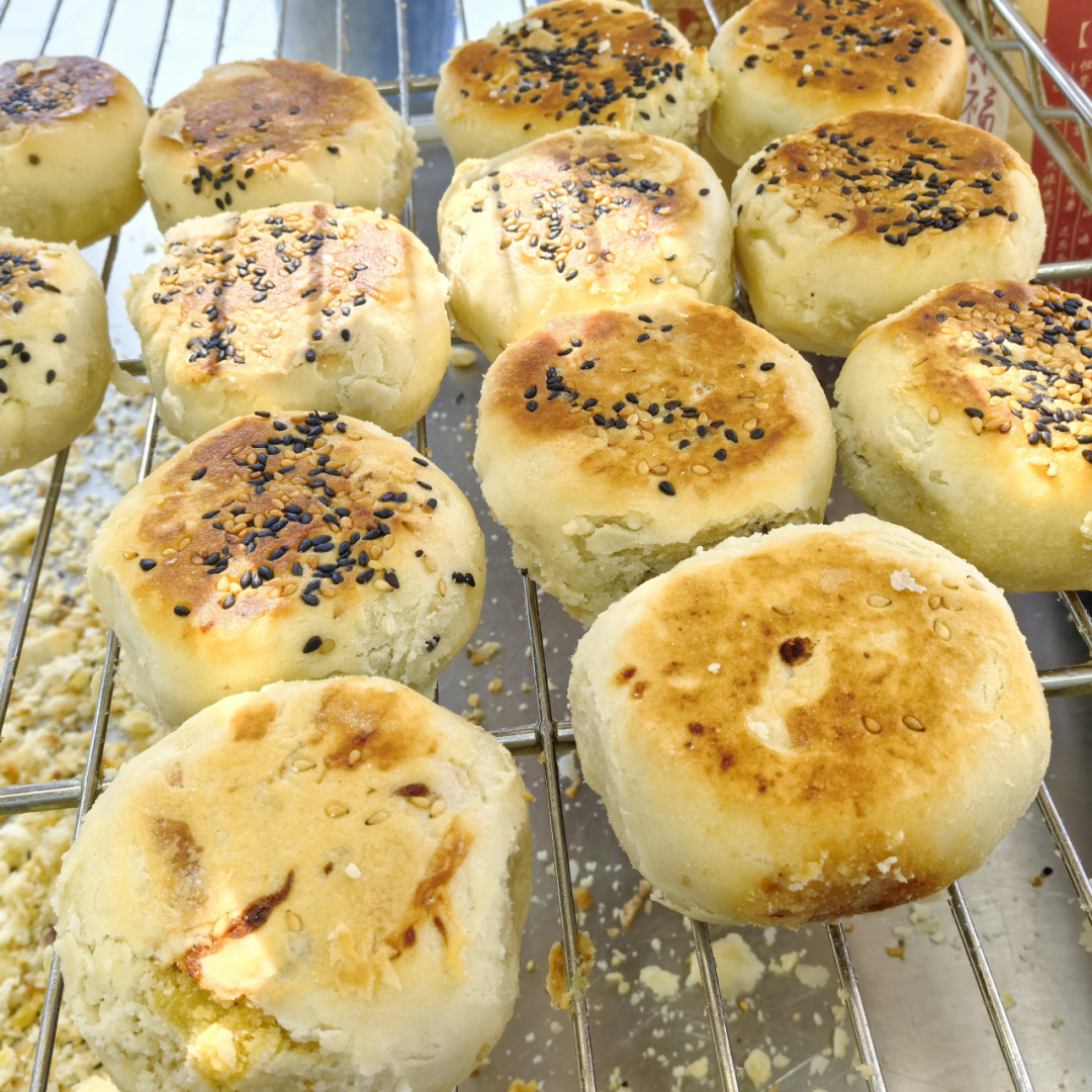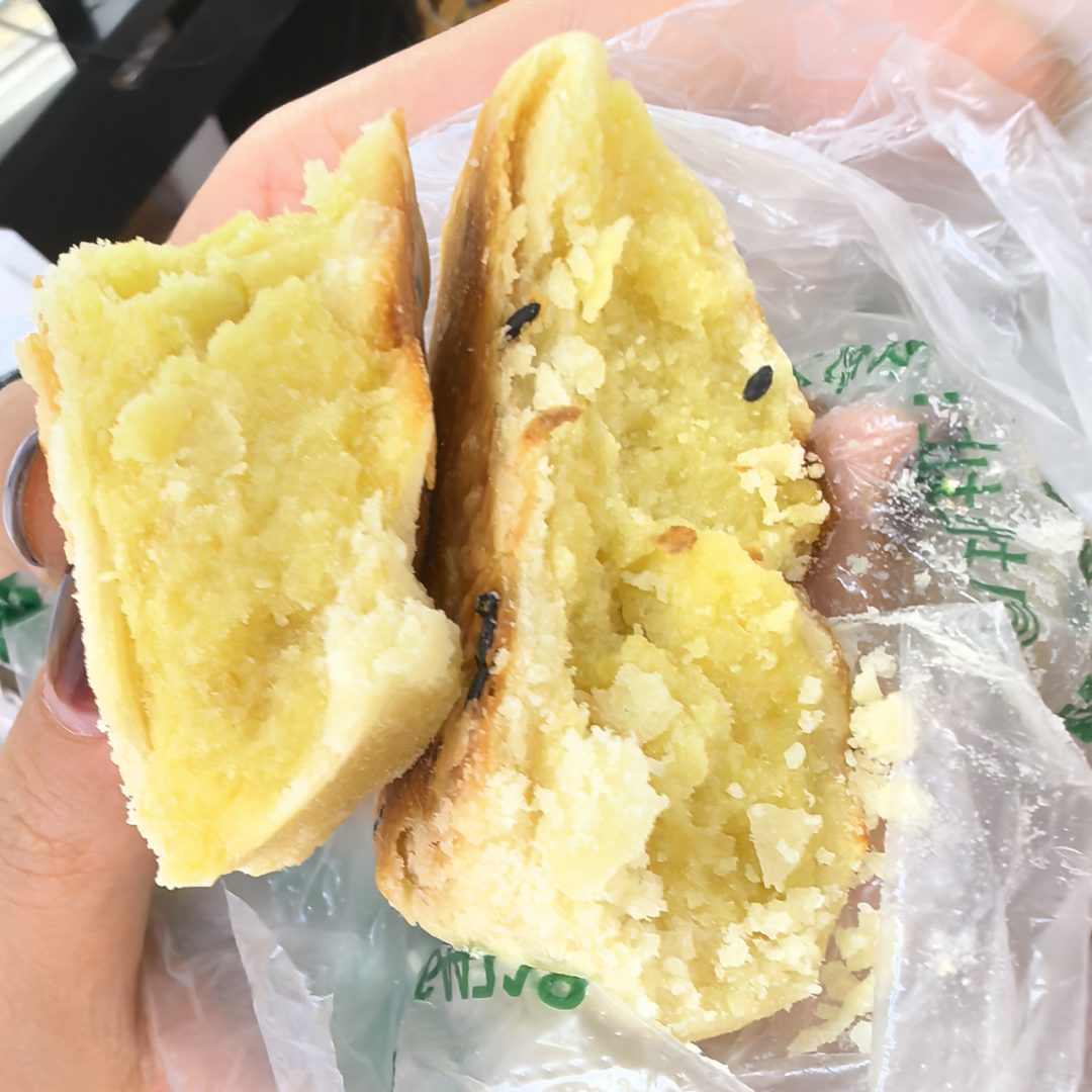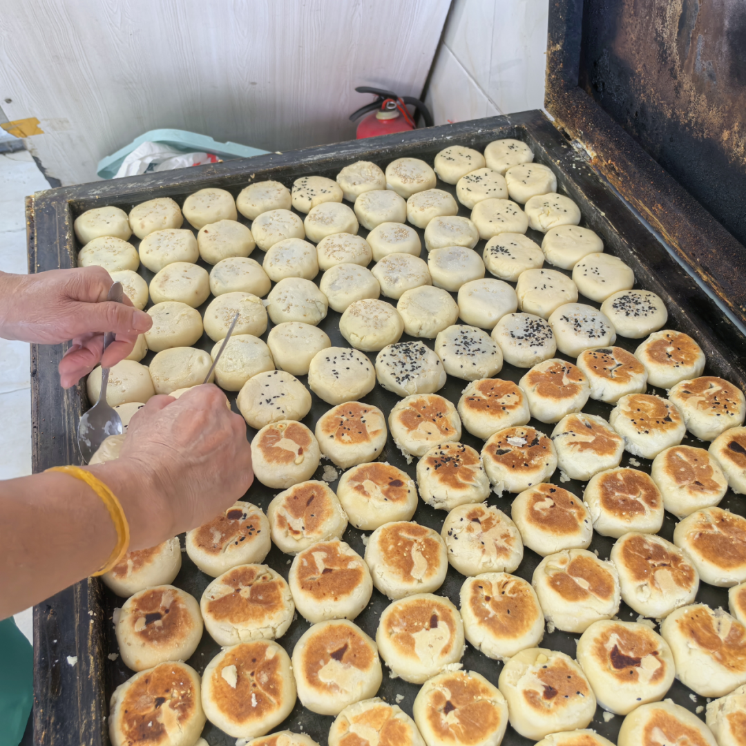 拎了四袋酥饼走的孙女士说,“早上八九点生意好要排队,我就是卡着十点来买的,刚出炉又香又好吃,绿豆、红豆、黑芝麻、椒盐四个口味带去公司正好给同事也分一下!”