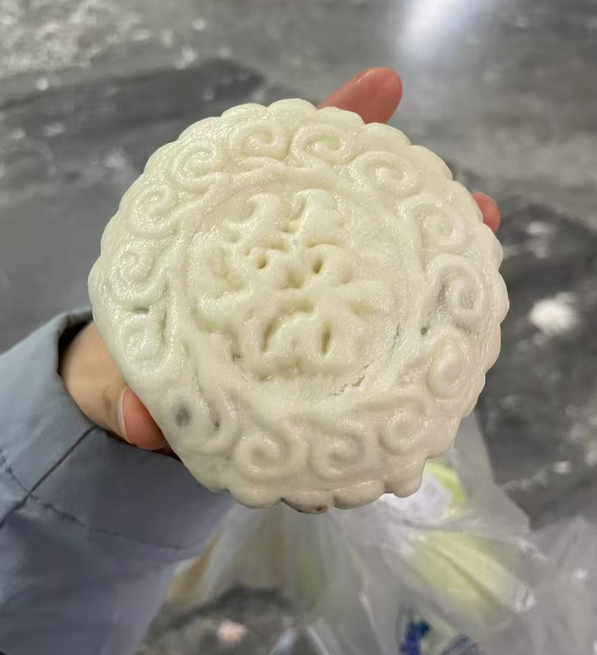 豆包上的“囍”字图案,看起来就令人心生欢喜,透过半透明、哏啾啾的外皮,可以看到那深红色的馅料,包裹着一整个秋天的温暖。