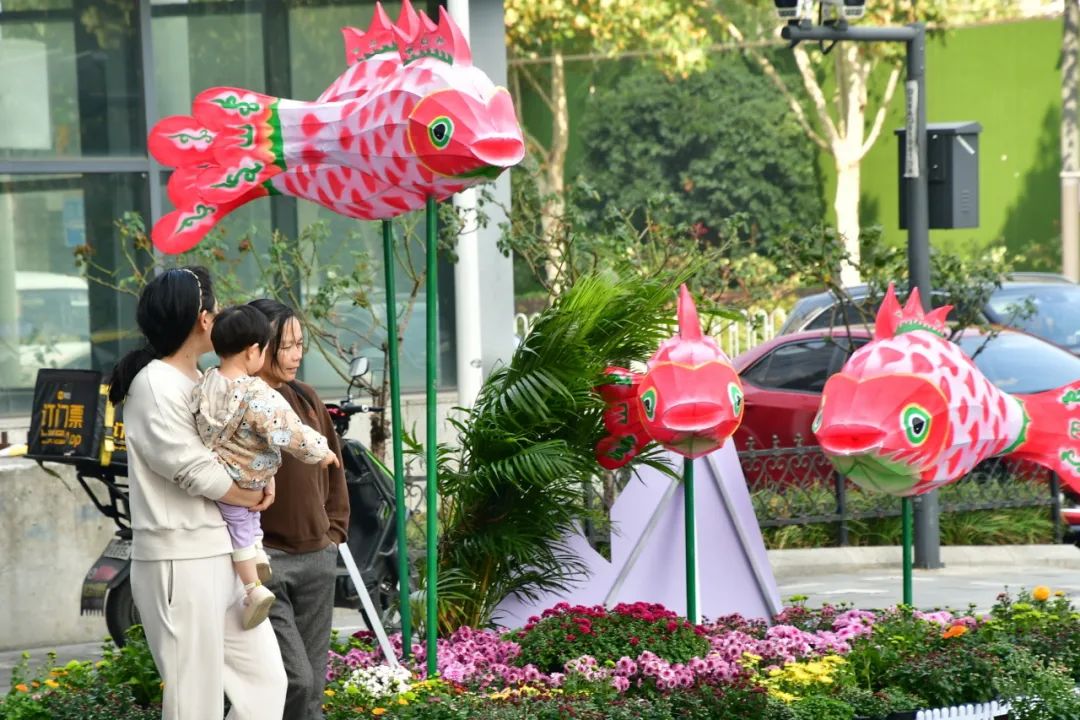 在汉中街道展位,鱼形风筝跃动蓝天,与菊花交相辉映,传递出在华夏大地的广阔天地间,人民怀揣对美好生活的向往,追求幸福的不懈努力。