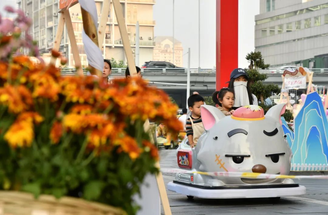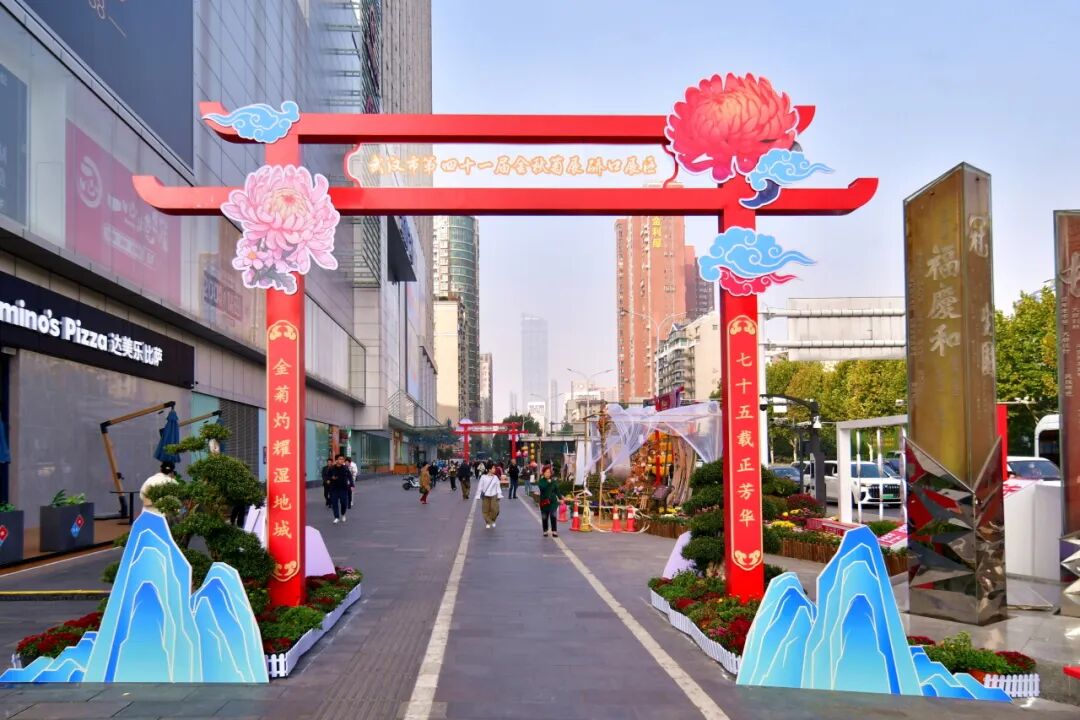 掩映在万花丛中的热闹市集,成为今年菊展硚口展区的一大亮点。硚口城管园林部门首次将传统菊展融入经济发展之中,为“菊花经济”火爆出圈增添一份契机。
