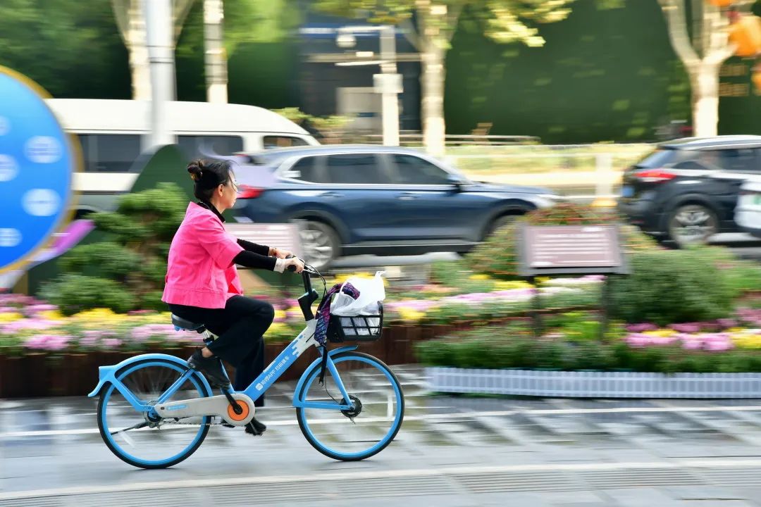 菊展的展示区恰好在共享单车停放区域,硚口城管共享单车专班临时调整电子围栏,同时在现场引导市民按序停放单车,让万株菊花与共享单车和谐共生。