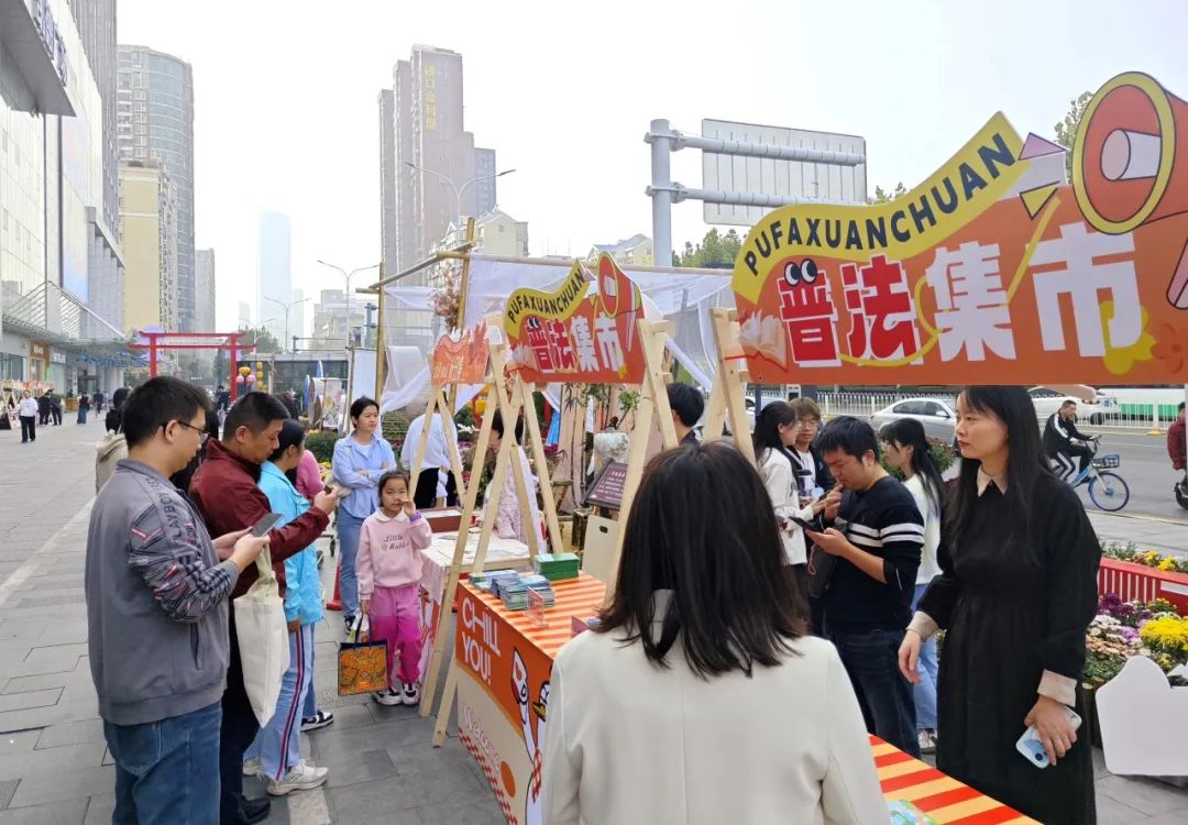 有趣、有料、有效的普法集市,人气爆棚,通过向市民发放宣传单、法律法规讲解等方式拉近了法律与民众的距离。