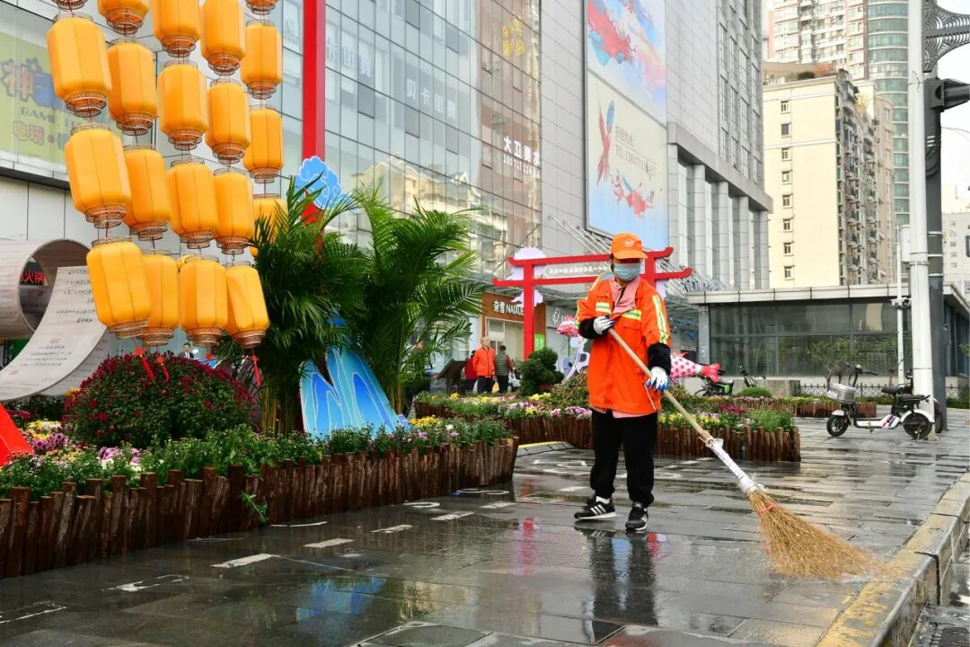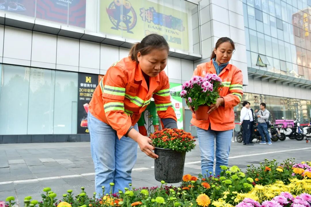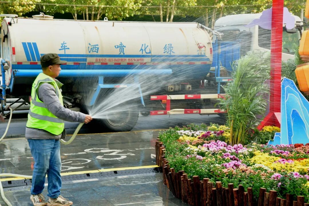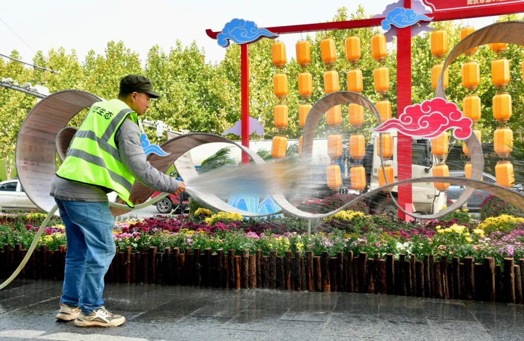 菊展期间,区街两级城管和环卫用“绣花精神”为菊展添彩。