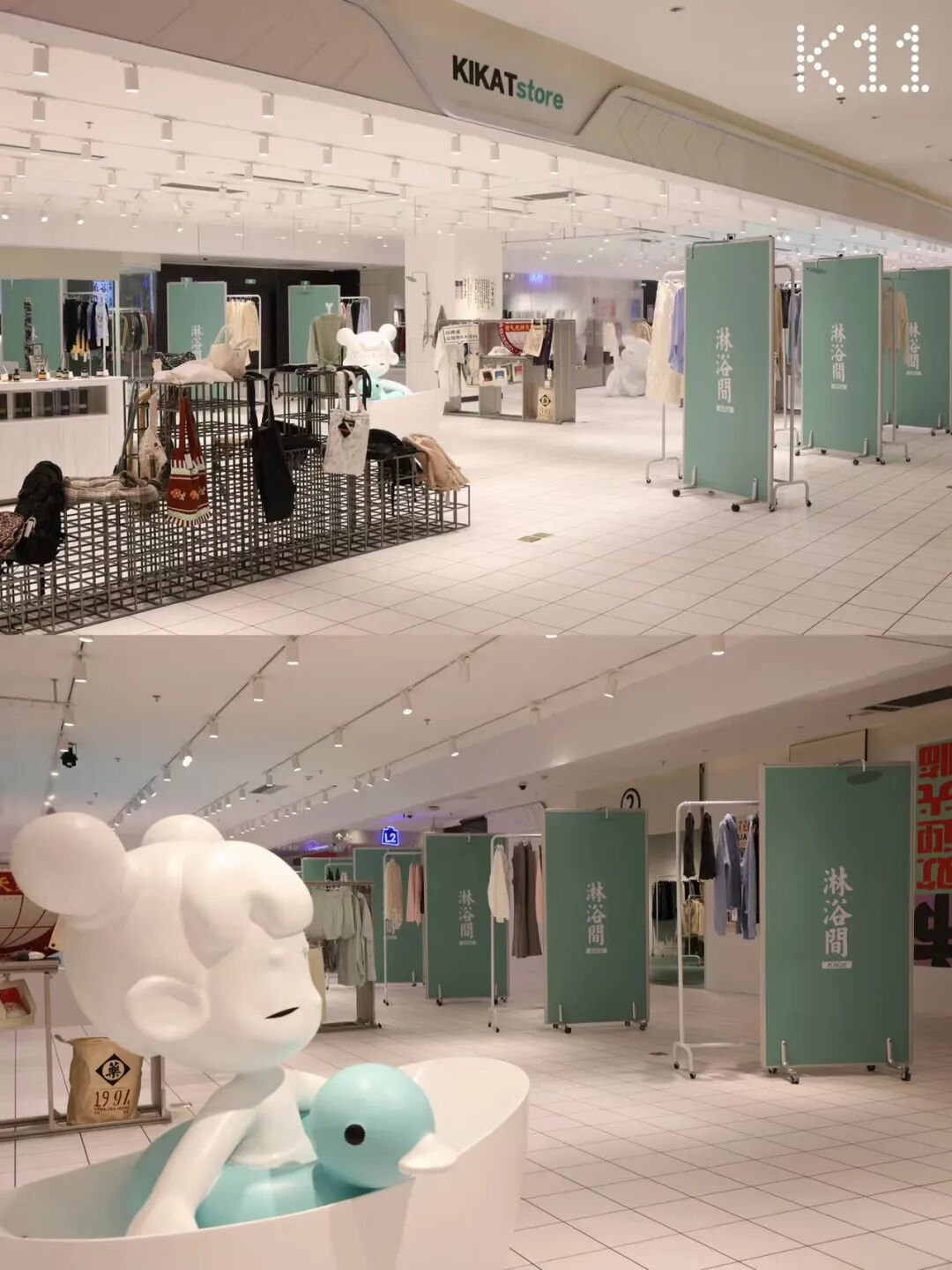 KiKat 【仙童浴室】,全新 「浴市」概念,结合「仙童」IP,独家打造专属于武汉K11的近千平潮流集合空间;集合数十个潮流品牌,武汉新晋时尚打卡地。