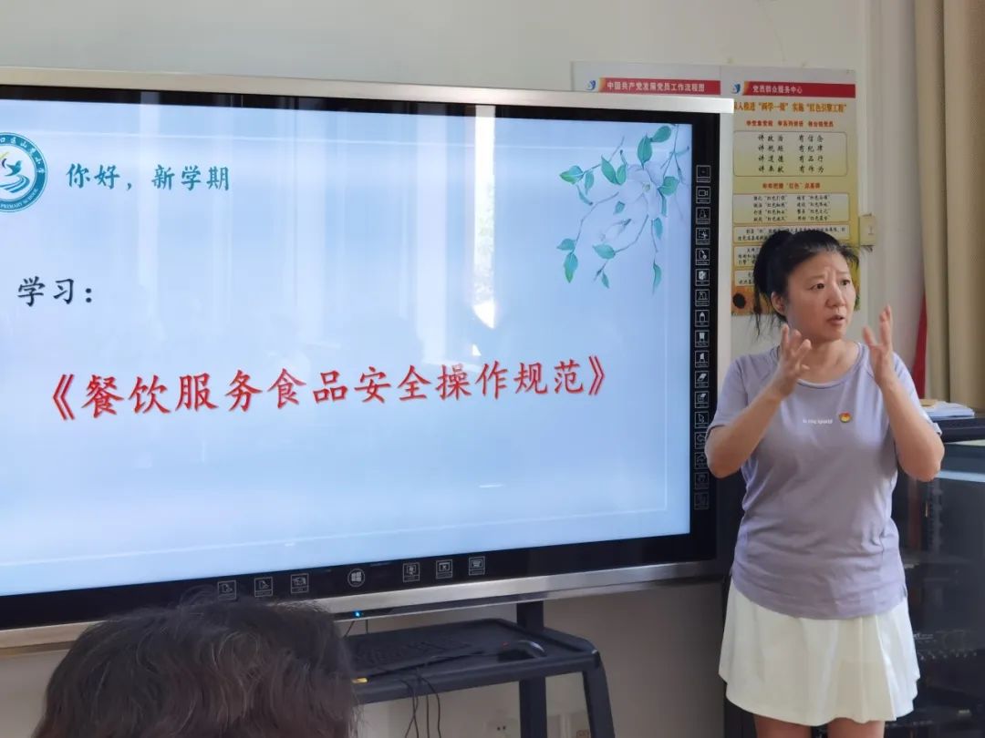 邀请社会监督部门、学生及家长代表加入学校膳食与食品安全管理委员会,参与和监督学校食堂食品采购、供餐单位选择等重大事项决策以及食堂管理工作。严格落实食堂从业人员培训机制,每学期开学初开展《学校食品安全与营养健康管理规定》培训,每月组织一次《餐饮服务食品安全操作规范》学习,每周开展食堂工作人员安全操作周评比。
