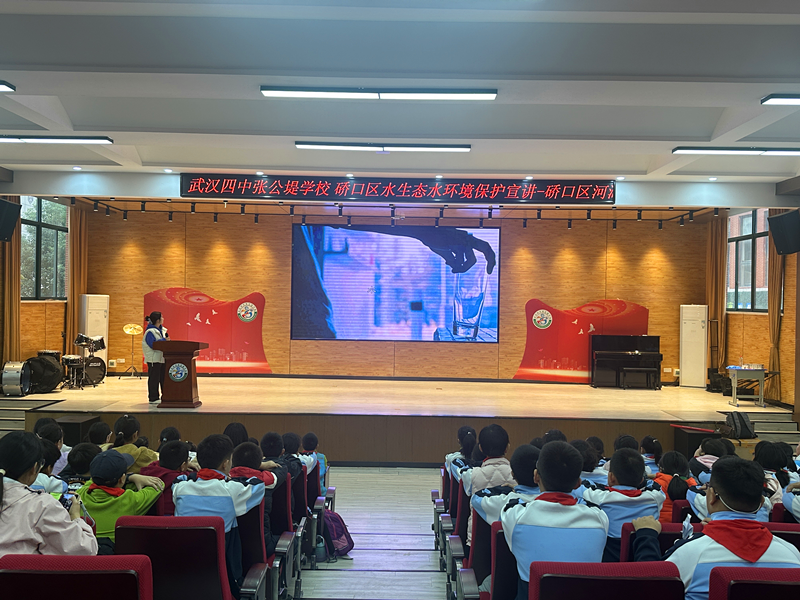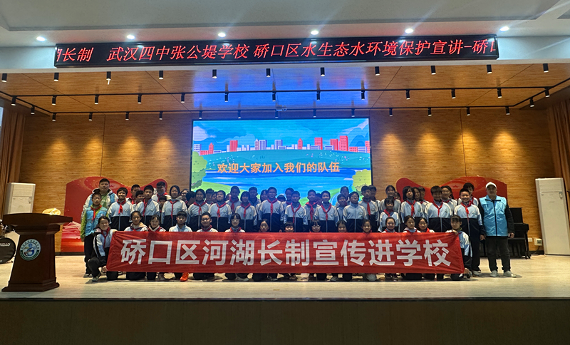 为科普河湖长制工作相关知识,提高青少年对河湖保护的认知度和参与度,营造全民参与治水的良好社会氛围,11月22日,硚口区水务和湖泊局联合共青团硚口区委员会、武汉爱我百湖志愿者协会组织开展主题为“绿水青山共守护,河湖宣传进校园”的宣讲活动。硚口区红领巾小小河湖长牵手武汉四中张公堤校区的学生、老师和志愿者共同在活动现场绽放光彩。