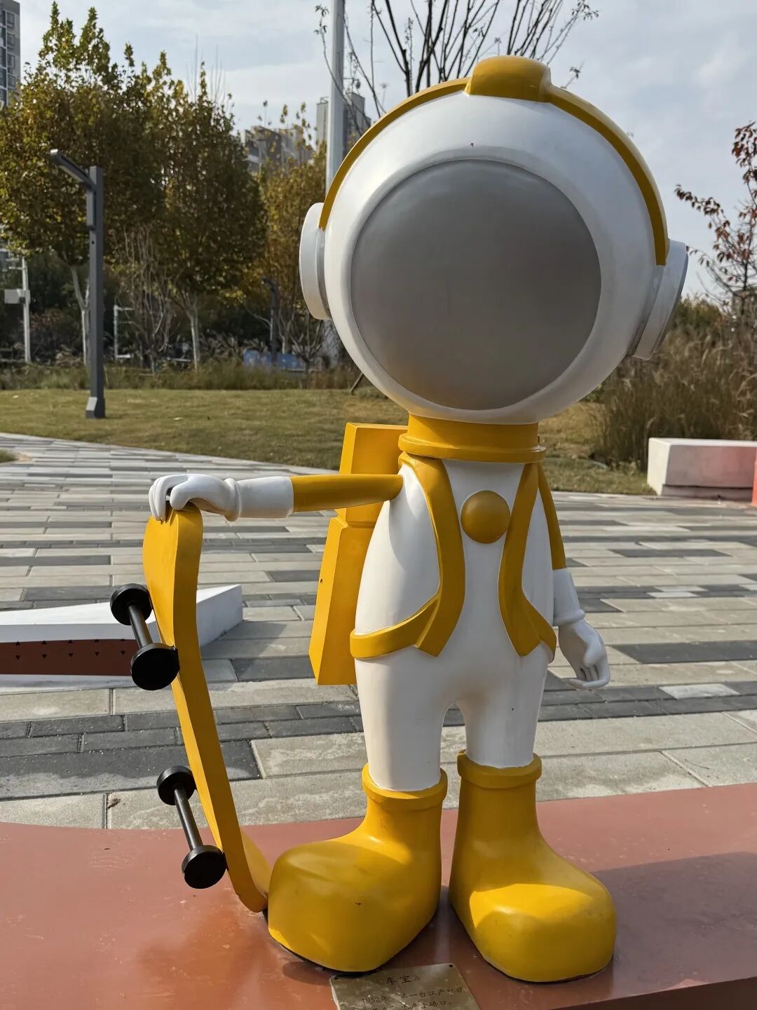六岁的古田公园“资深玩家”泽泽,除了对滑梯、跷跷板那些游乐设施爱不释手,他偶然间还发现了樱花跑道沿线有水宝、皂宝、纺宝、火宝、机宝、电宝、漆宝、车宝等8个工业IP吉祥物。