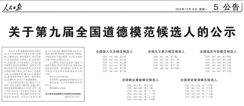 第九届全国道德模范候选人公示
