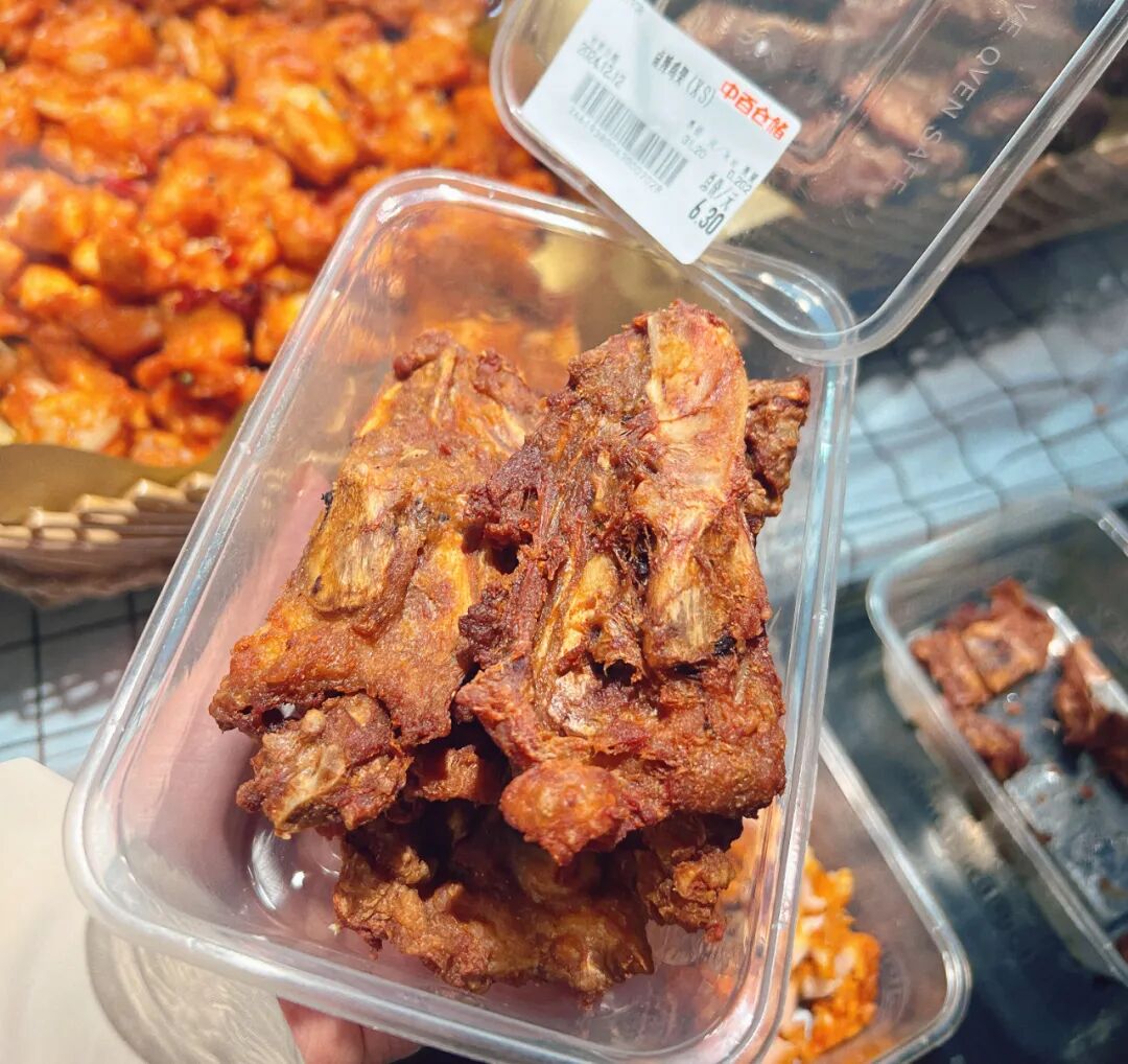 ↑ 受到一致好评的卤辣鸡架,一盒才6.3越来越觉得,熟食——才是一个超市的隐藏加分项。当然了,果蔬和生鲜是基本功。中百·邻里汇的果蔬区非常赏心悦目,摆满了不同品种的果蔬,漫步其间,就像正在参观一本色香俱全的果蔬百科。