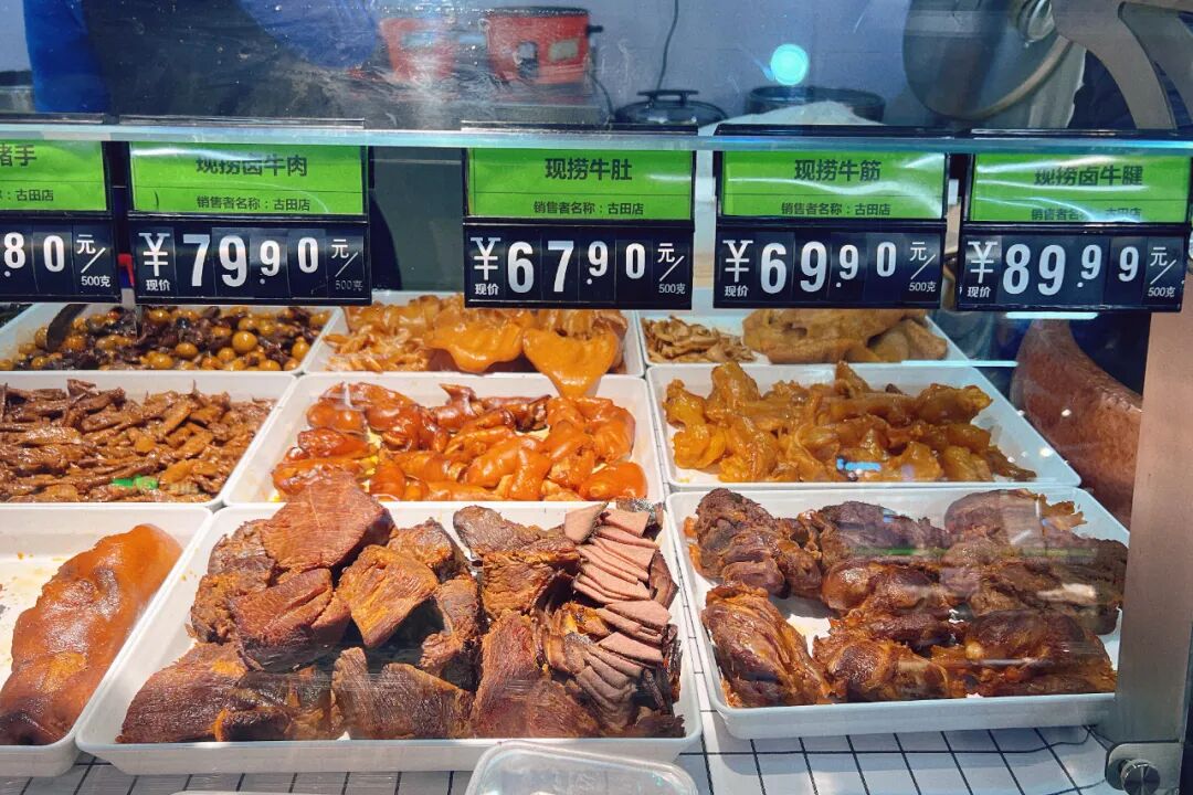 在逛“中百·邻里汇”之前,我从未想过对一家超市的评价居然是:好吃。除了常见的熟食品类,我们还惊喜的发现了肚包肉、山猪尾骨这种刁钻美味,光炸鱼就有6种不同部位和口味,每个橱窗干净明亮,随处可见“自己不吃的不卖”这种安全感爆棚的标语。