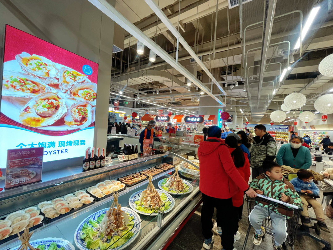 12月31日,盒马在硚口区凯德西城迎来一家新店开业。正值迎元旦、迎蛇年新春,新店全副喜庆“年装”亮相,提前掀起了年货消费热潮,也给武汉市民增添了跨年庆祝、过年购物的好去处。