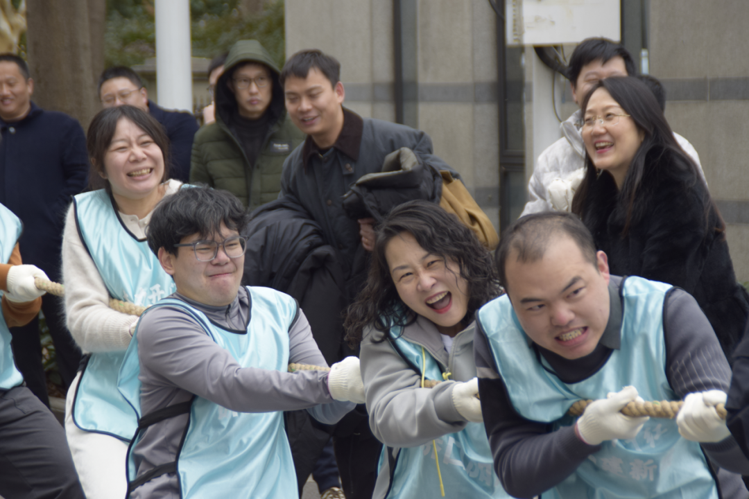 2月5日中午,在区行政中心大楼前,来自区直机关21家单位18支代表队的运动员和啦啦队员,约200余名机关干部职工齐聚拔河比赛。