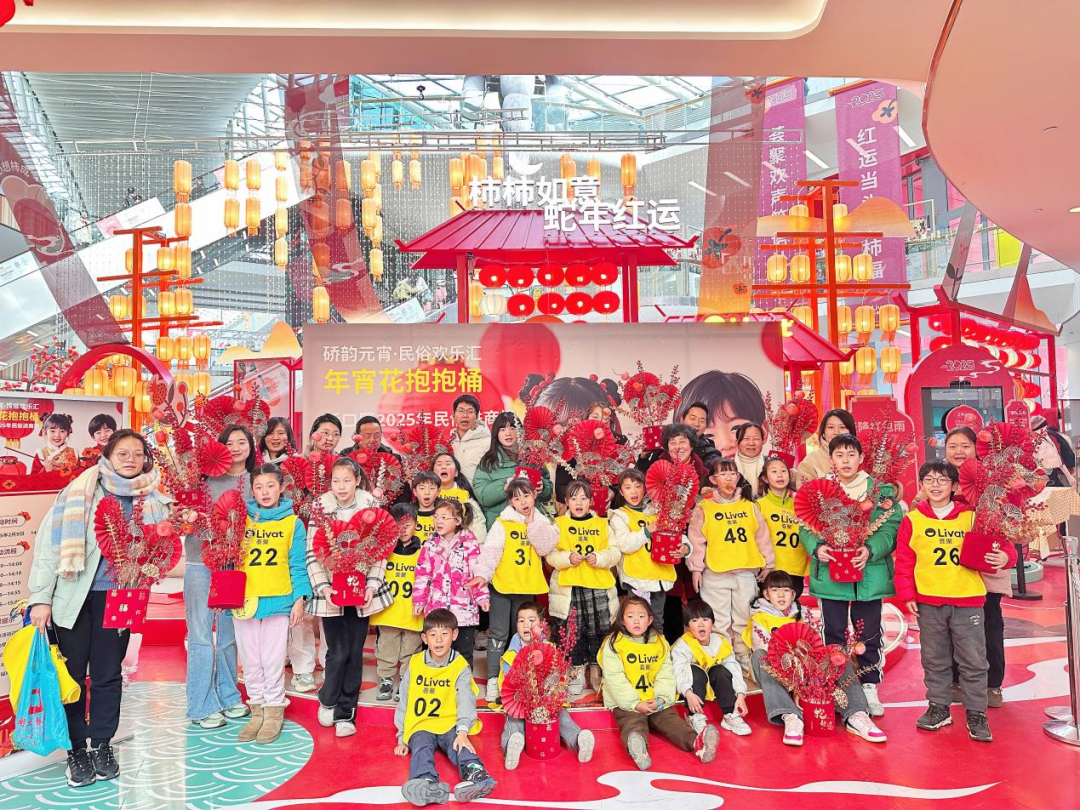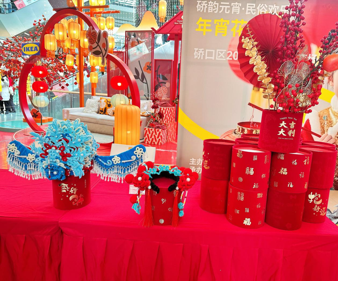 活动当天,硚口荟聚人声鼎沸,而位于中庭的活动区域则被布置得年味十足,各式年宵花争奇斗艳,色彩斑斓,为寒冷的冬日增添了几分生机与温暖。