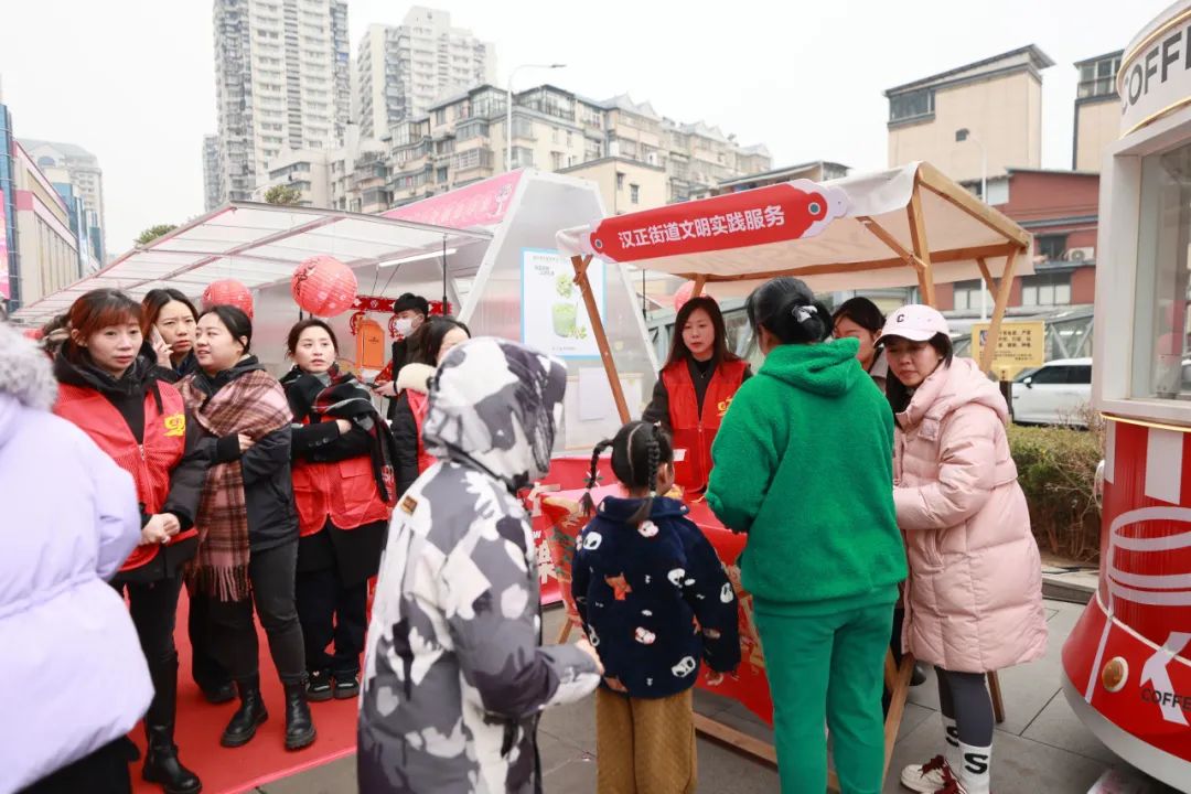 活动现场人头攒动,硚口区道德模范及先进典型代表、“文明HUI客厅”示范街道及接力街道代表、社区居民和来自全国各地的客商共同打卡汉正街。