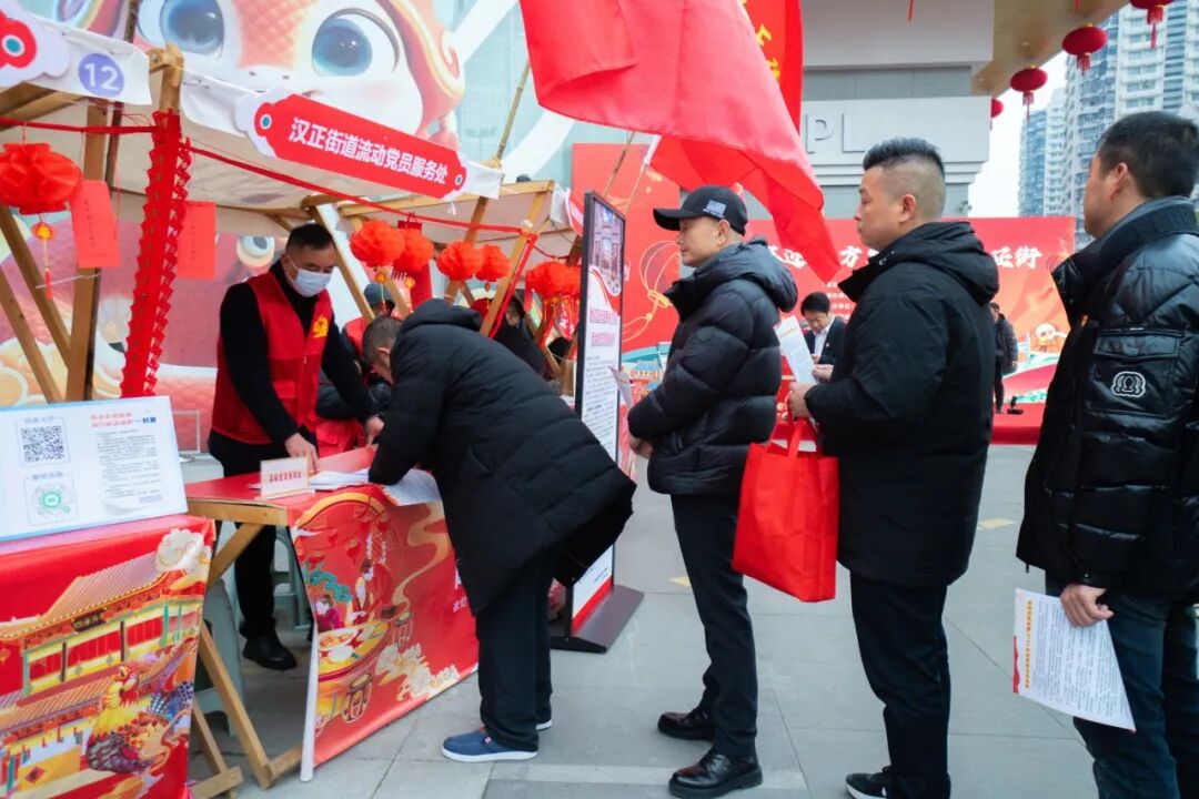 在流动党员报到处展台,来自金昌辅料市场的4名流动党员主动前来报到,“正月初八我们就从家乡过来了,今天汉正街开市,刚好看到这里有个流动党员报到处的展台,我们赶紧过来报到了,这下我们在汉正街做生意也不会落下学习啦。”流动党员宋千芊说到。近年来,汉正街道党工委坚持着眼“三个引导”,即引导党员诚信经营,引导党员发挥优势,引导党员积极奉献,并结合市场特色和流动党员特点,充分发挥流动党员在诚信经营、依法纳税、扶贫济困、促进发展和构建和谐社会中的先锋模范作用,努力做到让流动党员“离家离乡不离党”。
