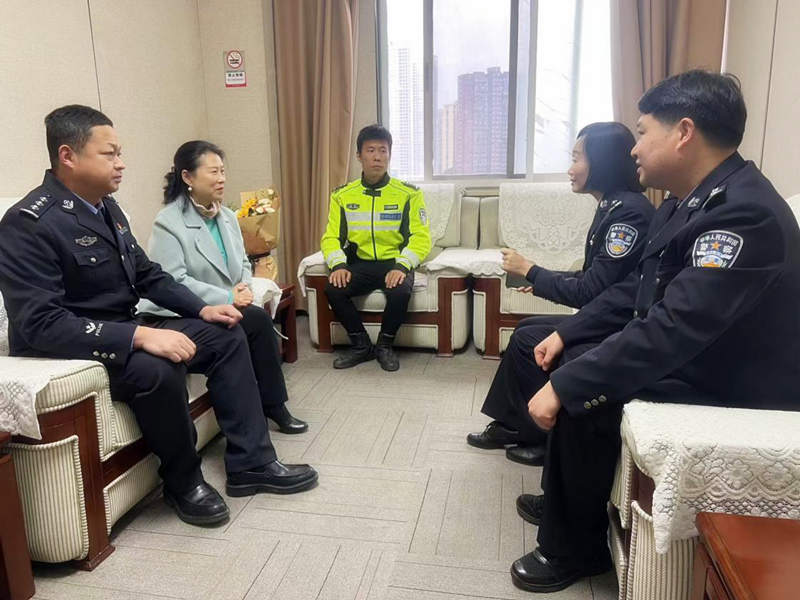慰问组向韩靖送上了鲜花,并与其亲切交流,详细了解韩靖工作生活情况。慰问组表示,韩靖的英勇行为不仅是区交通大队的骄傲,更是全区人民学习的榜样,要继续大力宣传他的先进事迹,弘扬社会正气。