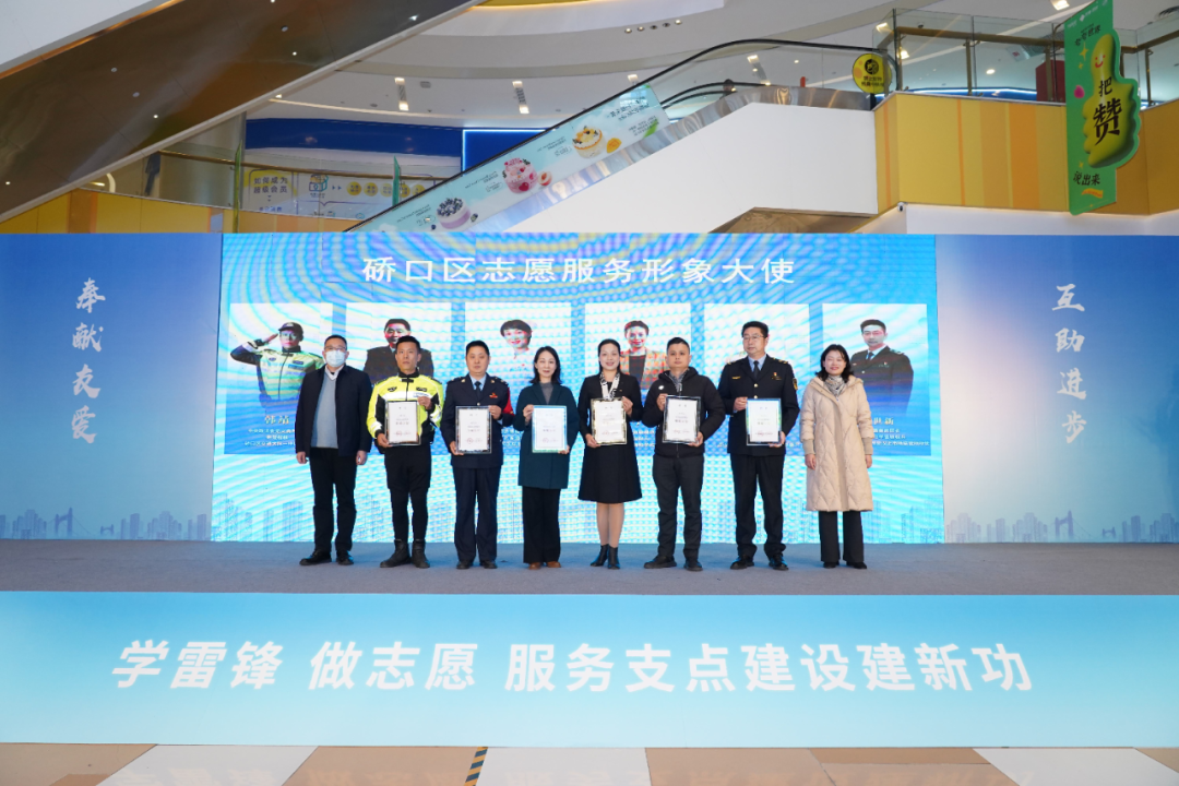 活动现场,全国道德模范杨小玲,全国最美志愿者肖芳,武汉楷模张青松、胡惠东,武汉市最美志愿者华世新,中央政法委见义勇为勇士韩靖等6位先锋人物获聘为“硚口区志愿服务形象大使”,并为来自不同领域、不同年龄的13支新成立的志愿服务队伍授旗。活动同步成立武汉市首个志愿服务项目孵化基地——硚口区志愿服务项目孵化基地。
