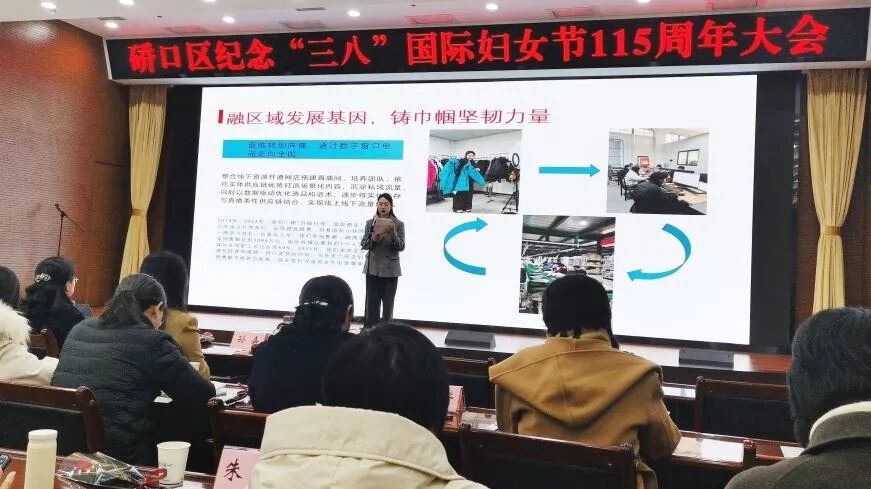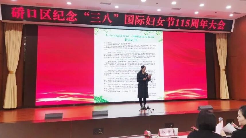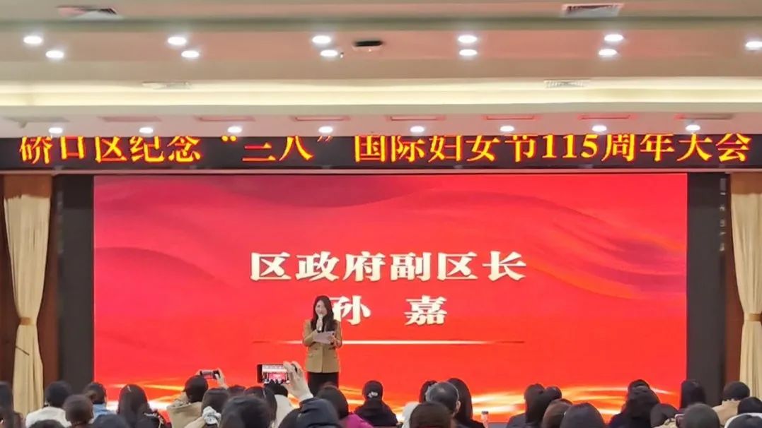 3月7日上午,硚口区举行纪念“三八”国际妇女节115周年大会,展示硚口区各领域女性巾帼风采,宣传硚口区女性榜样力量。市妇联副主席周华明、区人大副主任万艳红、区政府副区长孙嘉、区政协副主席郭军、区法院院长梅飚等领导出席会议。