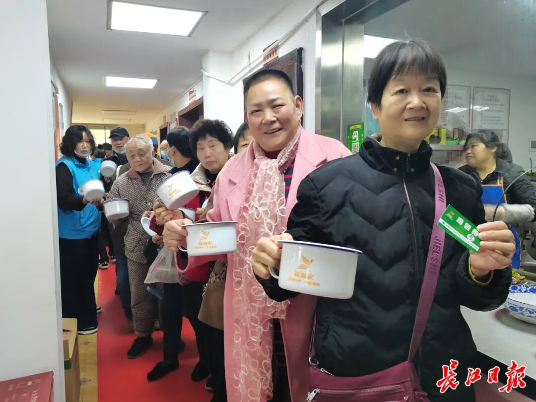 “看看我们食堂多贴心哟!”14日中午11时,在硚口区长丰街道园博北社区的幸福食堂里,已经有20来位老人排队打饭。他们手中拿的是幸福食堂专门定制赠送给老人的餐具。