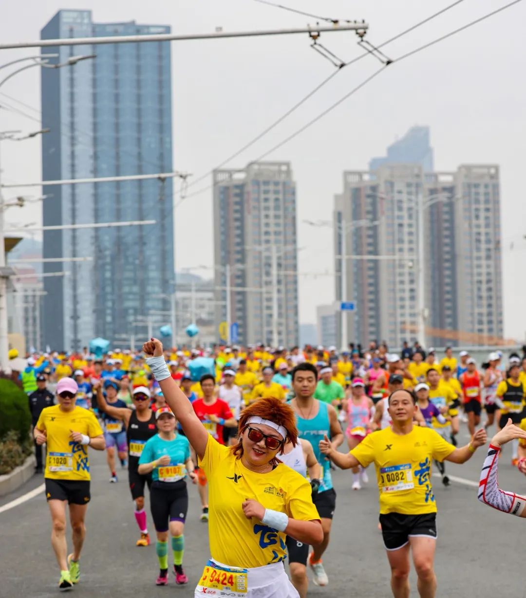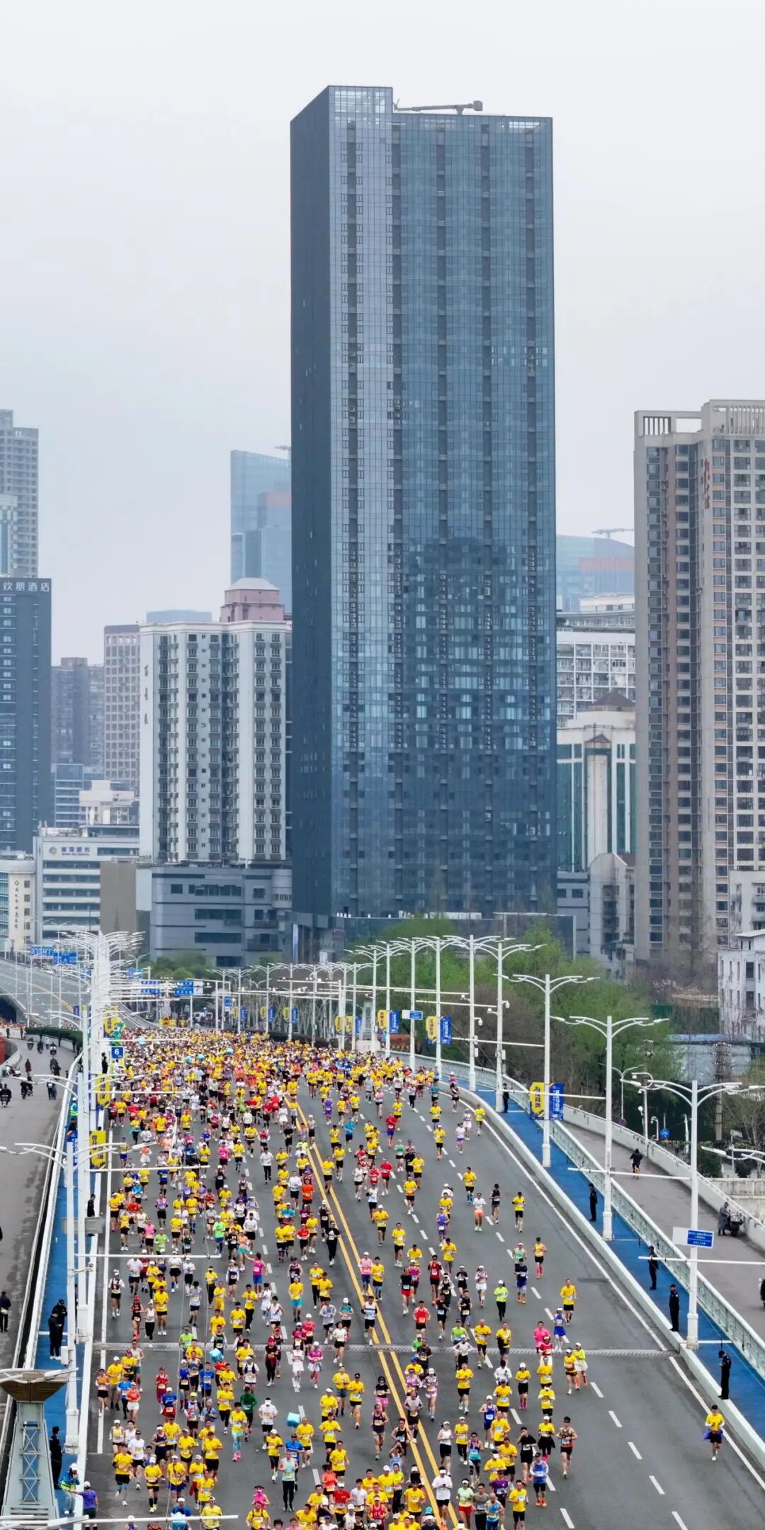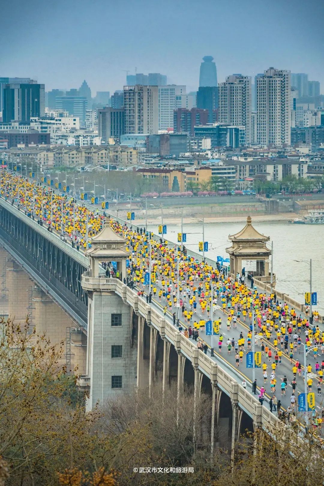 武汉马拉松赛道横跨“一城两江三镇四桥五湖”,被称为“最美赛道”。