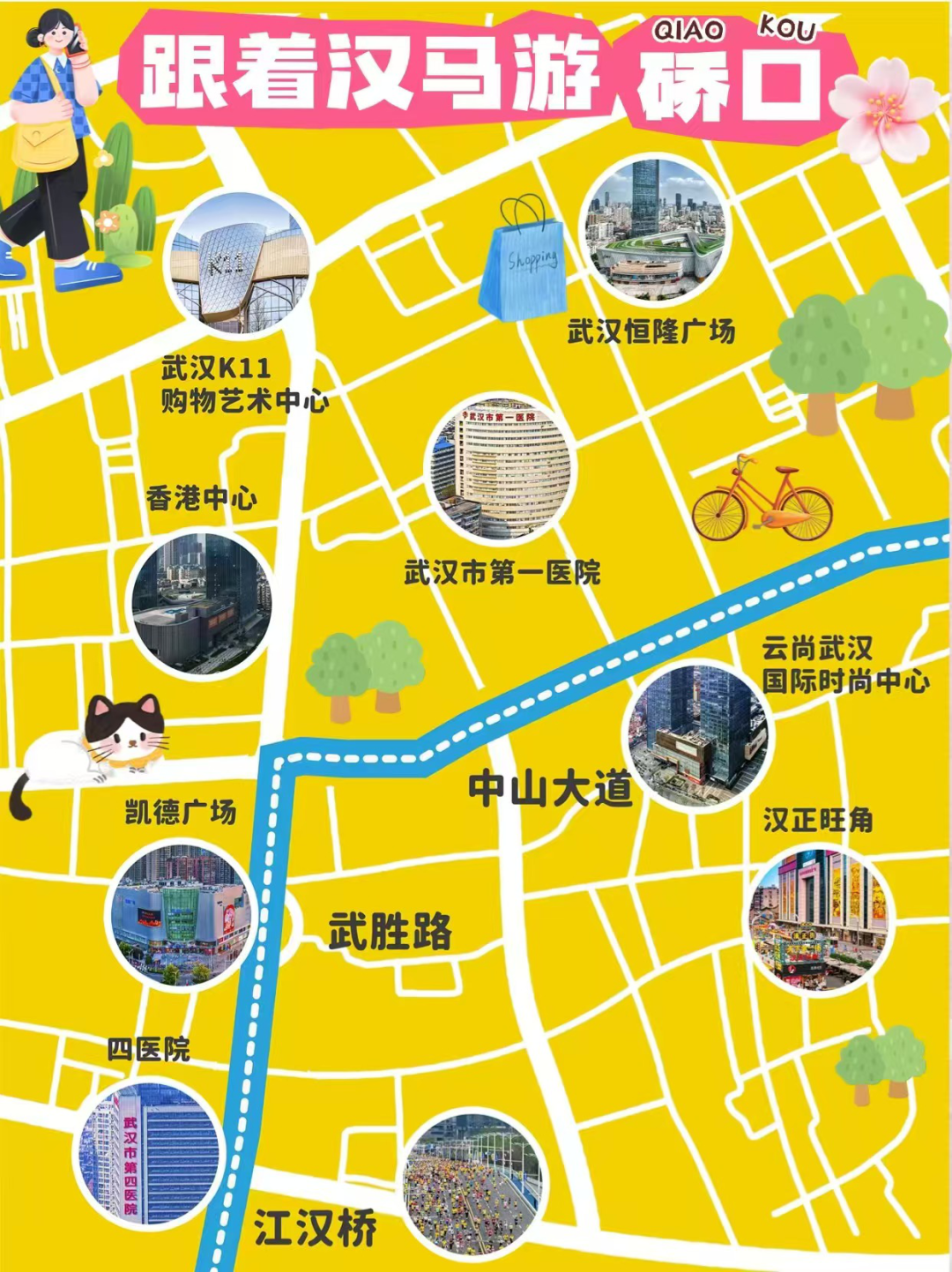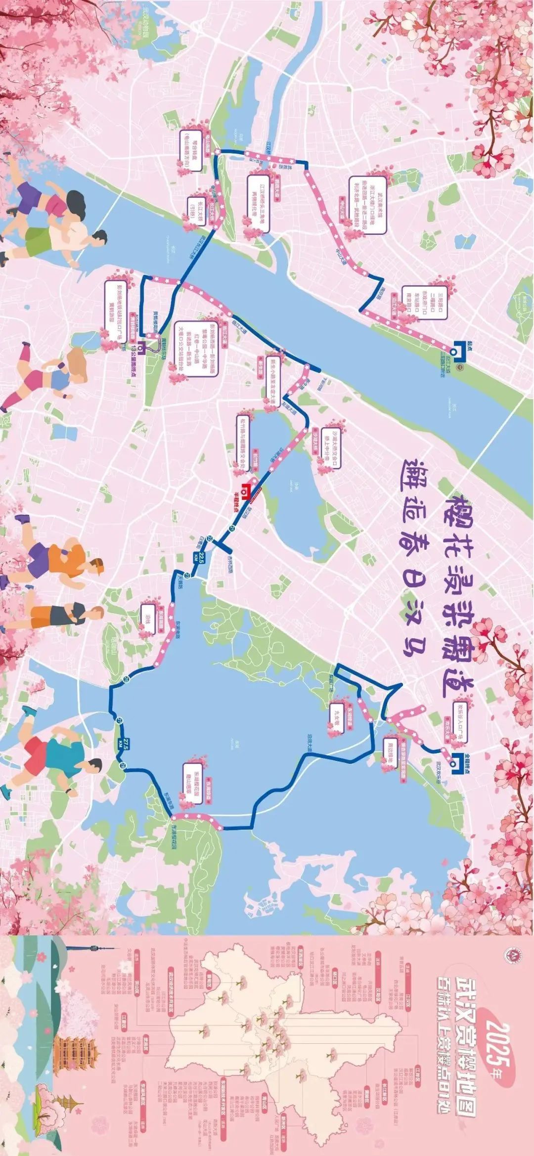 ▲ 2025汉马赛道沿途樱花打卡点位。(图源|武汉马拉松)