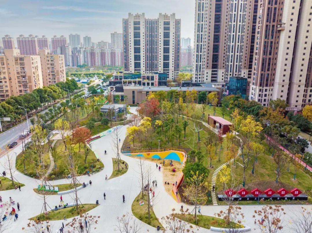 除了老旧小区改造,金东方还承接了公园提升改造,建设的4个公园项目连续入选“湖北省最美口袋公园”。位于硚口区的武汉首座滑板主题公园中,满是人们旋转跳跃的飒爽英姿,通过堆坡造景形成塑造高低起伏的地形,成为滑板运动的绝佳场所,又以自由的曲线与弧线相结合营造出多变的公共空间。而另一所城华园,则塑造出文化活动广场区、儿童攀岩区、戏沙区、环园跑道、山顶景观亭等活动空间,充分满足了市民休憩、游玩、锻炼的需求。