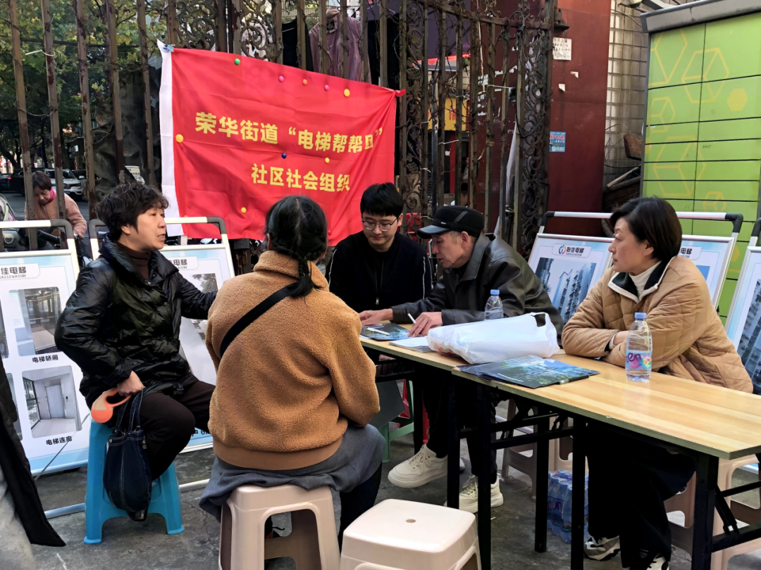 作为硚口区首个电梯加装社区社会组织,“电梯帮帮团”自去年10月成立以来,已吸纳8名“能人骨干”,他们中既有辖区热心党员、居民骨干,还有专业律师、技术工程师。团队成员既是政策“翻译官”,将专业术语转化为居民听得懂的家常话;更是邻里“和事佬”,带着自身加装经验上门协商,打消居民顾虑。在街道的大力支持下,“帮帮团”化身“智囊团”,针对性给业主们支招破题、答疑解惑,已在荣华苑等小区开展3场宣传活动,接收200余份电话咨询。