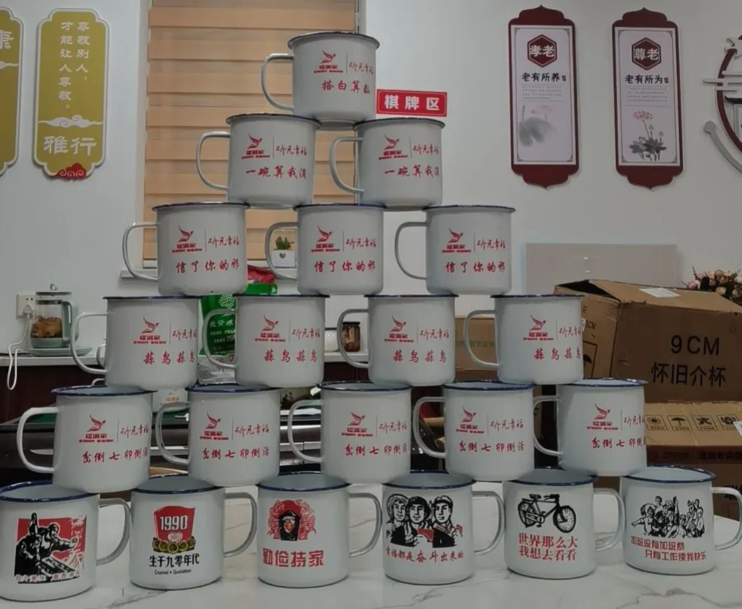 ▲ 老人们拿着食堂送的文创杯