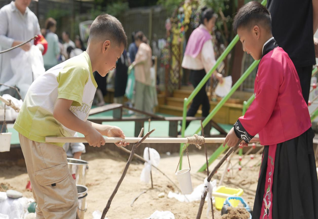 ▲ 沙水池里玩自制轱辘井。