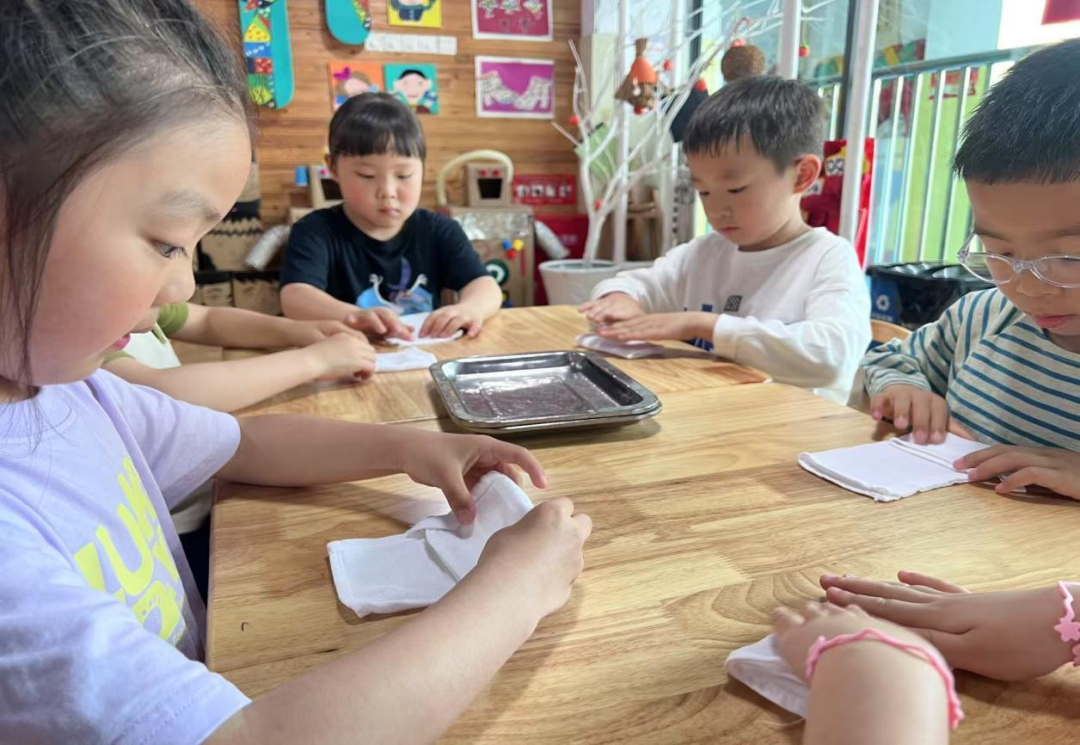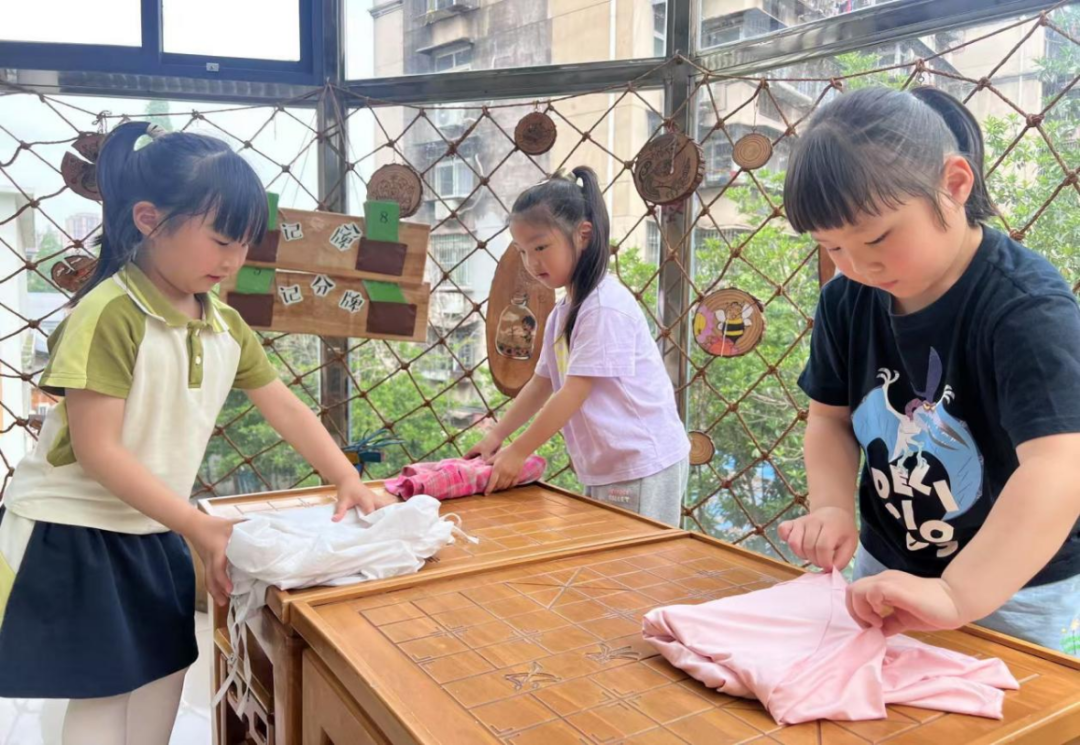 游戏中,孩子们识五谷、系鞋带、叠被子、整理小书包…… 让生活中的一点一滴、一食一养沁润他们的成长。