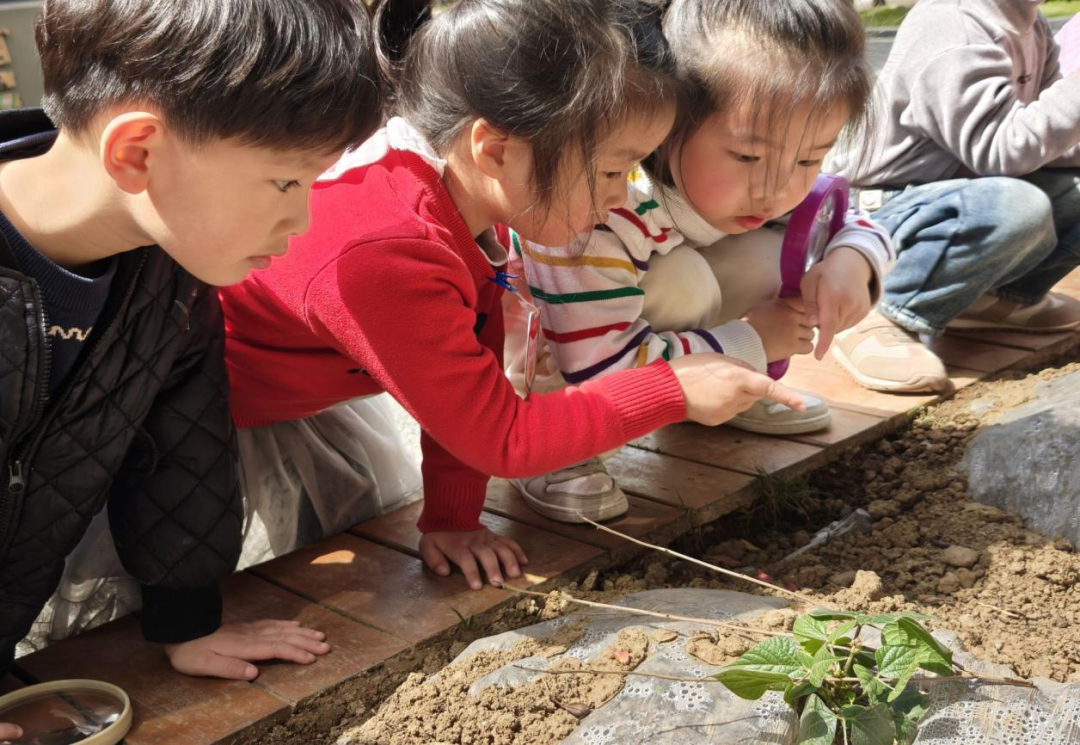孩子们穿梭在梧桐树下,蹲在蚂蚁洞穴旁......在大自然的风声雨声、花开花落中,探寻生命的奥秘。