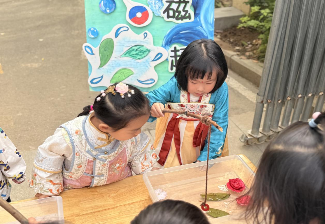 ▲ 和小树叶玩磁铁游戏。