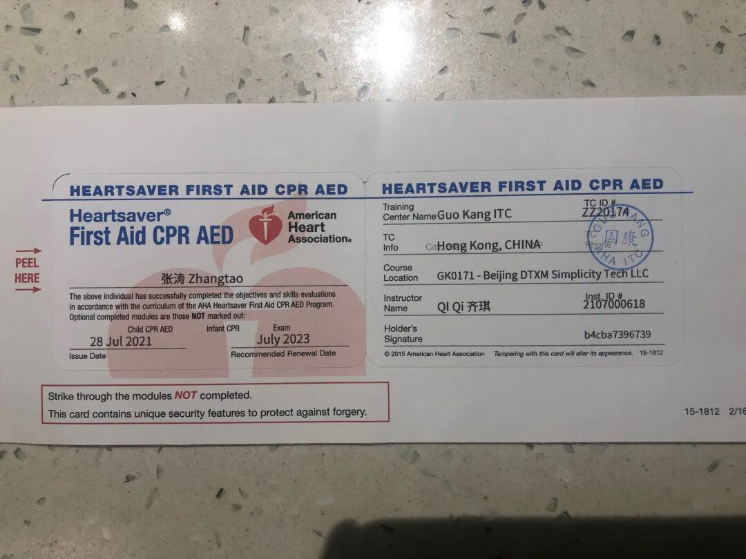 张涛的冷静与专业,为这场救援争取了宝贵的时间。“当时根本来不及想,性命攸关的时候人最重要。2021年我考上了美国心脏协会(AHA)急救证书, 这是我遇到的第二次施救,场馆配备的AED急救设备大大减少了人员猝死的概率。”张涛说。