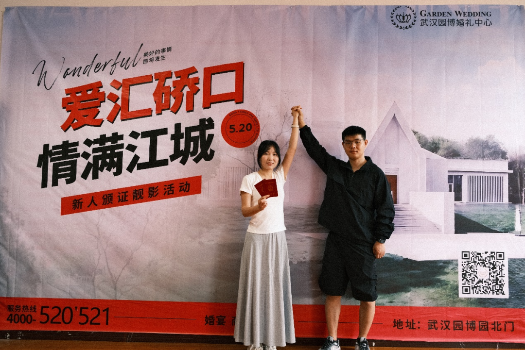 5月20日和21日,因其谐音“我爱你”,已成为结婚登记的高峰日。5.20硚口已经预约登记结婚133对,5.21也突破100对。硚口婚姻登记中心充分放号预约,及时审核预约登记信息,真诚迎接来办理婚姻登记的市民,并在颁证室推出“爱汇硚口 情满江城”新人颁证靓影活动。