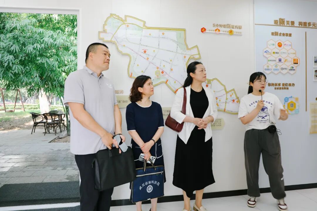 武汉市肺科医院是湖北省内唯一的肺部疾病专科医院。在院史馆,第九届全国道德模范杜荣辉带领“红色肺扬”医疗志愿服务队,16年义务诊治数千名肺病患者、守护人民健康的奉献精神在墙上展示,引发参观者的共鸣。杜荣辉说:“今天‘看硚口’,最大的感受就是硚口从‘面子’美到‘里子’!在硚口汉江湾体育公园,看到大地万物勃发,行走在街头巷尾,老旧小区焕发新颜……处处焕发出新时代的生机与魅力!如今,新建的武汉市肺科医院汉江湾院区,也将是武汉市内最大的花园式三甲医院。我将不忘初心,继续前行,带领更多的医务工作者为老百姓提供优质的医疗服务。”