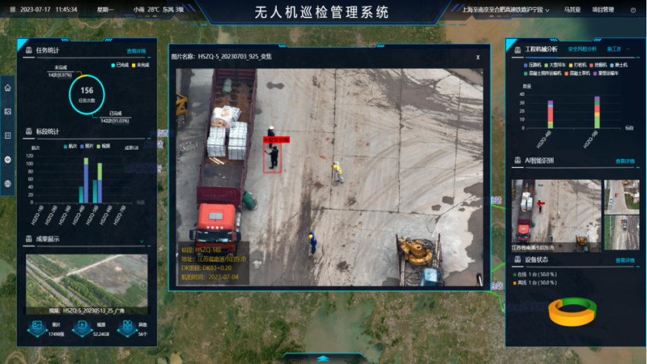 技术人员将人工智能与无人机结合,进行安全、环保智能化巡查,实现了减员和更加全面的精准管控,成果已推广到10余个重点项目中。研发的桥梁施工核心智能装备,在多个大桥项目上刷新了国内超大型沉井施工纪录,并多次获得央视报道;成果之一的人工智能赋能的水中作业平台安全管控成套装置和海上施工安全指挥调度技术,确保越江跨海桥梁水中作业平台的安全。